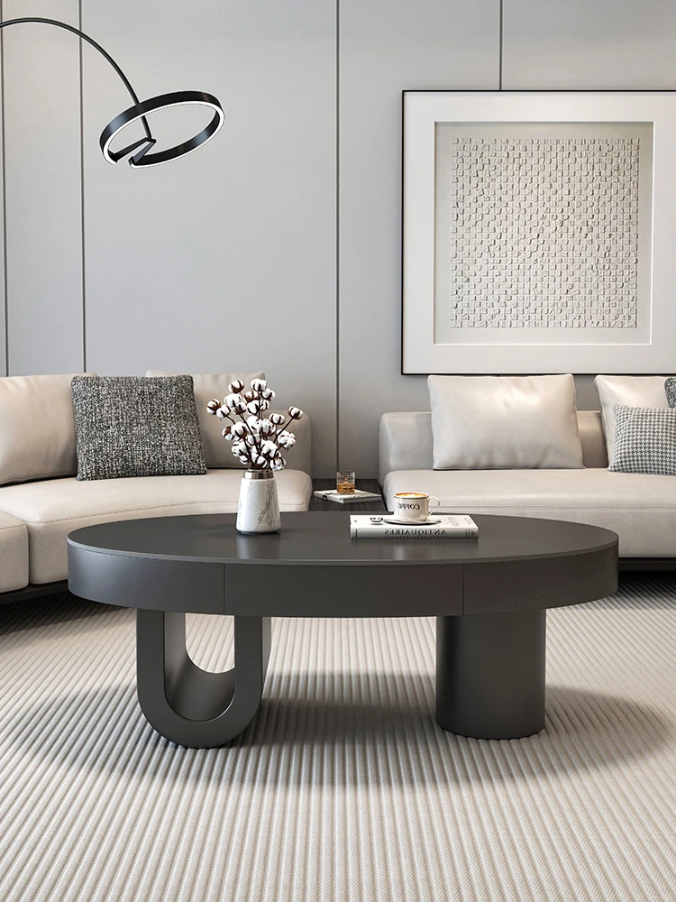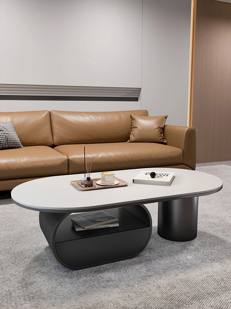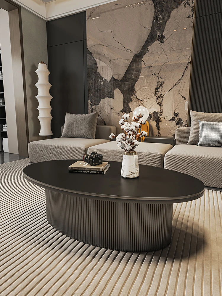 デザイナーオーバル型ミニマリスト高級感あふれる岩板コーヒーテーブル - リビングルームに最適なシンプルモダンな小型家具で、スタイリッシュな空間を演出!