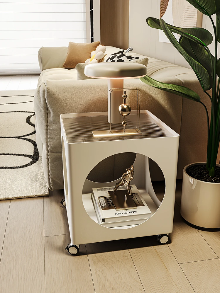 移動可能なソファサイドテーブル!おしゃれな小型キャビネットやベッドサイドテーブルにも最適。バルコニーにぴったりなガラス製のミニコーヒーテーブルとシンプルな収納ラックで、空間をスタイリッシュに演出!