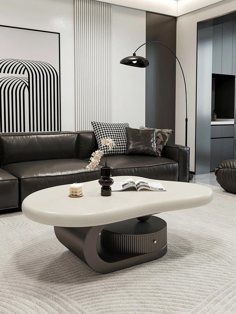 モダンでシンプルなミニマリストリビング用、軽奢華感漂う不規則な岩板コーヒーテーブル。デザイナーが手がけた、スタイリッシュな小テーブルで、あなたの空間を洗練された雰囲気に演出します。