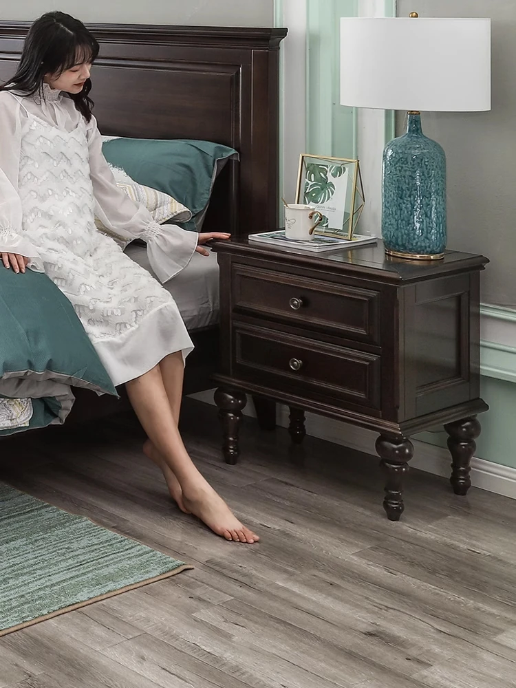 American Vintage Solid Wood Nightstand for Small Spaces - European Style Bedside Cabinet with Two Drawers for Storage in Walnut Finish