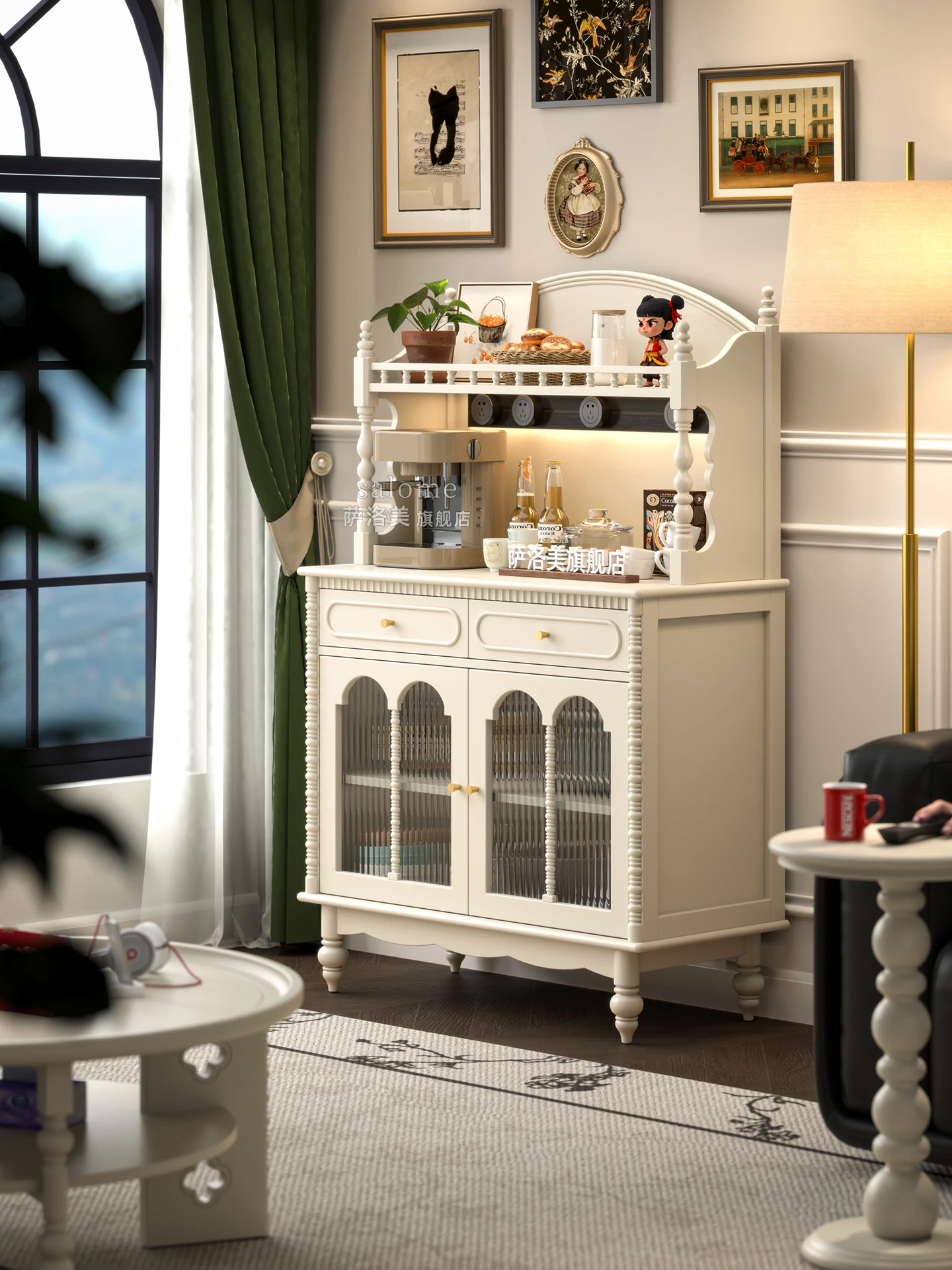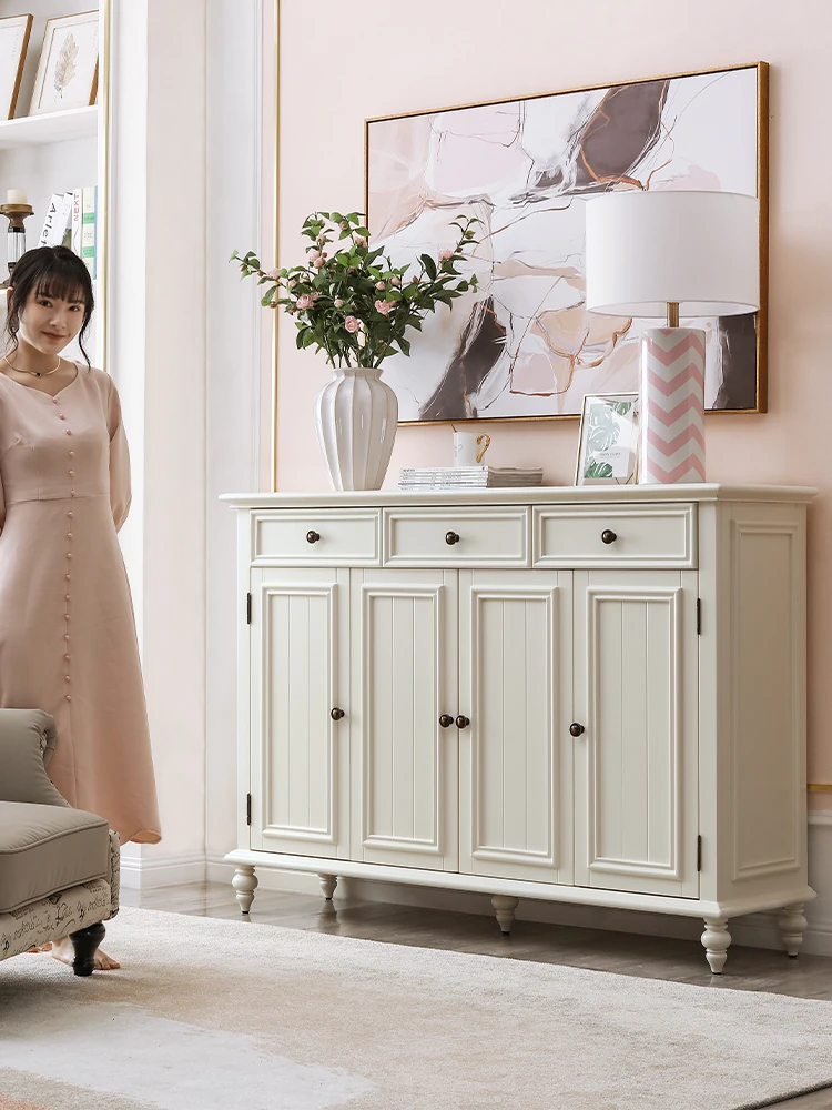 Creamy Finish Solid Wood Sideboard - Wall-Mounted Storage Cabinet for American Style Living Room - Compact French-Inspired Bar Cabinet - New Design for 2025