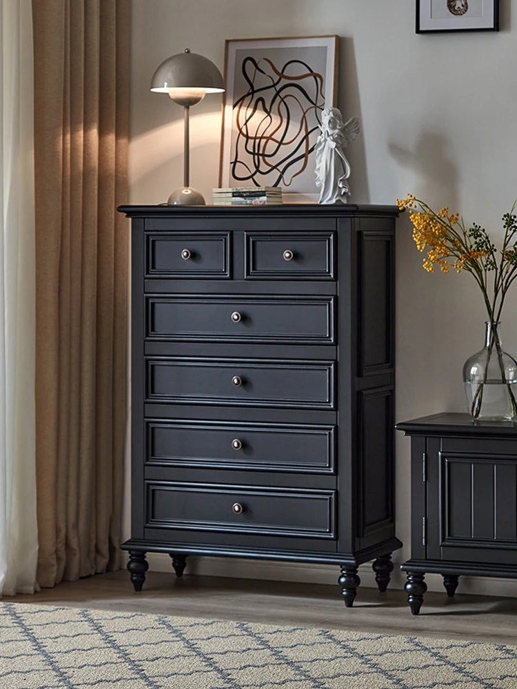 Modern American Solid Wood 6-Drawer Storage Cabinet – Stylish Black Entryway Organizer for Small Spaces, Perfect for Bedroom and Home Use