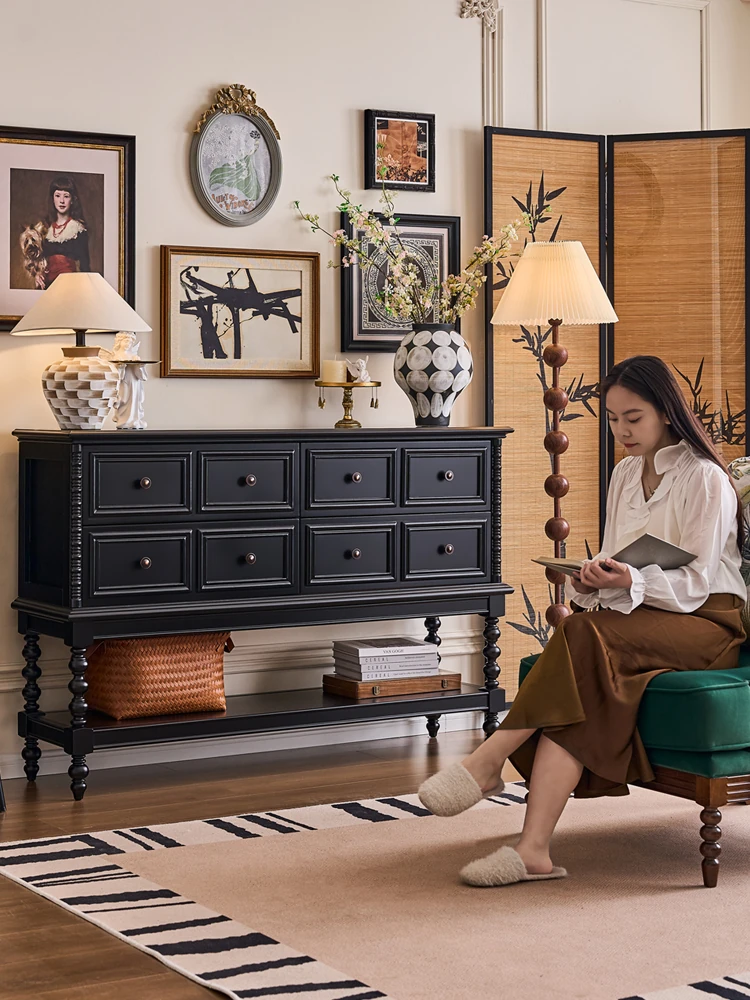 Vintage French Solid Wood Sideboard - Black American Style Storage Cabinet for Living Room, Entryway, and Dining Area - Perfect for Adding Charm and Functionality to Your Home Decor