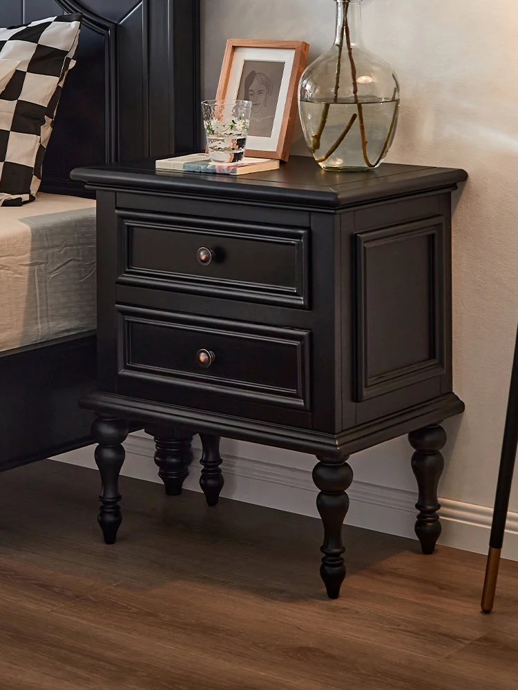 French Style Black Cream Nightstand - Modern Minimalist Bedside Storage Rack, Movable Small Cabinet for Bedroom Organization