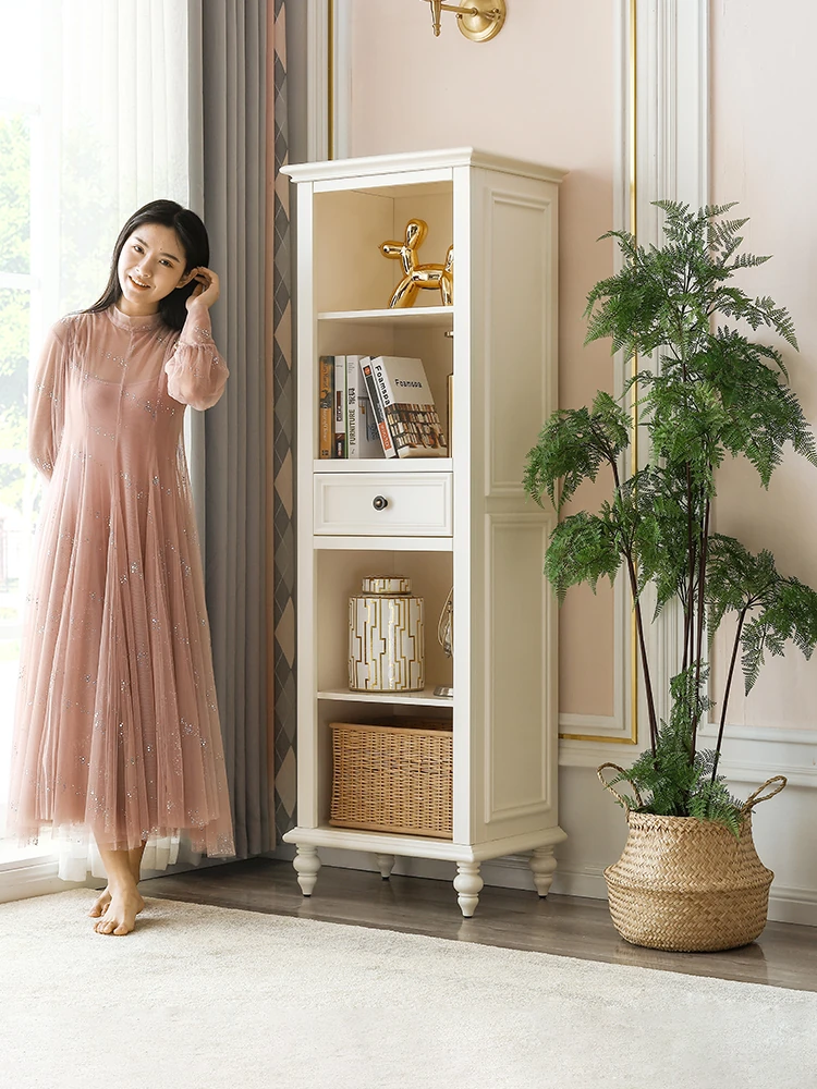 Stylish American Solid Wood TV Stand and Cabinet Set - White Bookshelf Storage Unit for Living Room, Tall Narrow Cabinet for High Storage Solutions