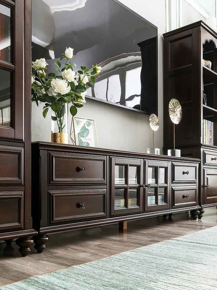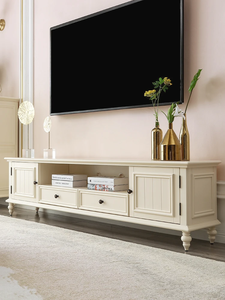 French Style Solid Wood Floor TV Cabinet with Storage - Vintage Chic Living Room Furniture for Home, Elegant American Light Luxury Design