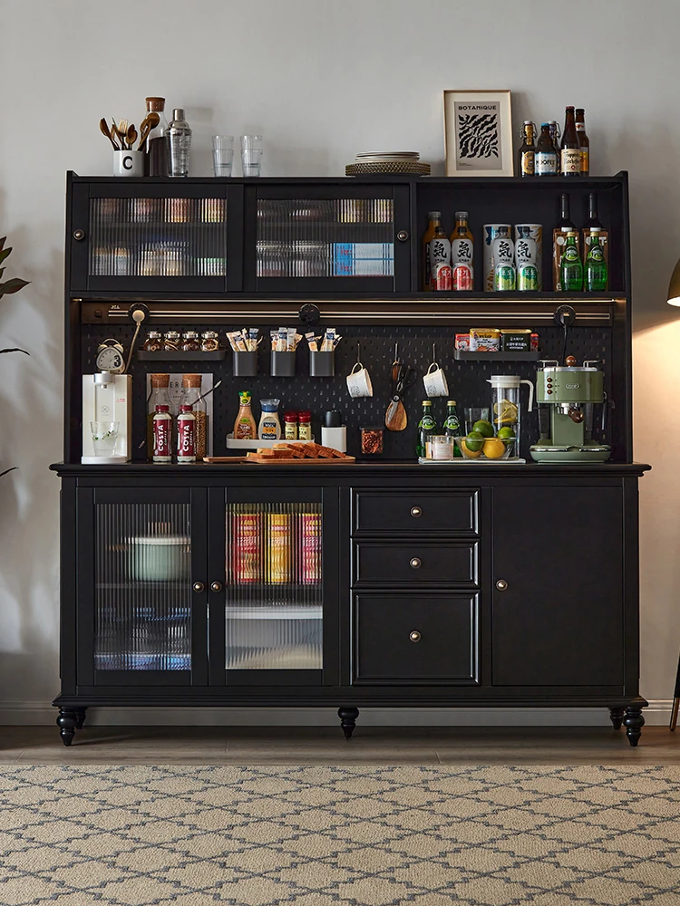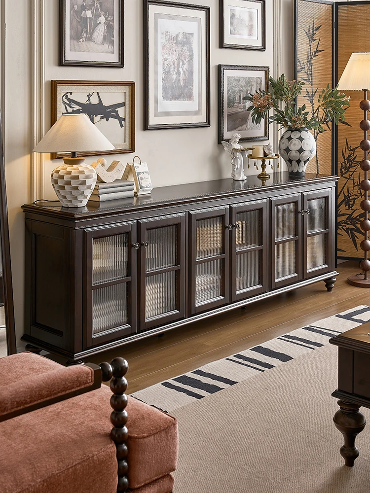 American Solid Wood Sideboard - Wall-Mounted Storage Cabinet, European Vintage Wine Cabinet, French Retro Dining Room Cupboard for Home Use