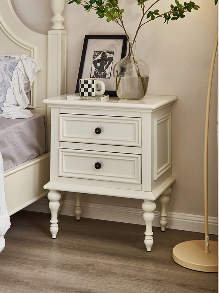 Modern Minimalist American Solid Wood Nightstand with White Drawers - Stylish Storage Cabinet for Small Spaces, Perfect Bedside Lamp Table