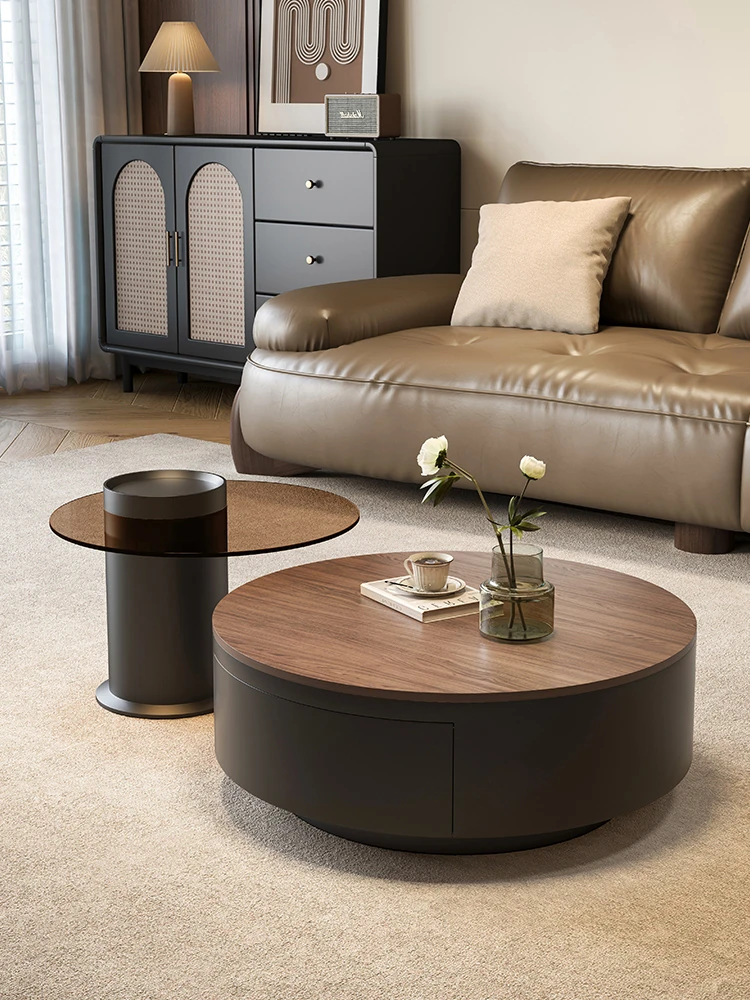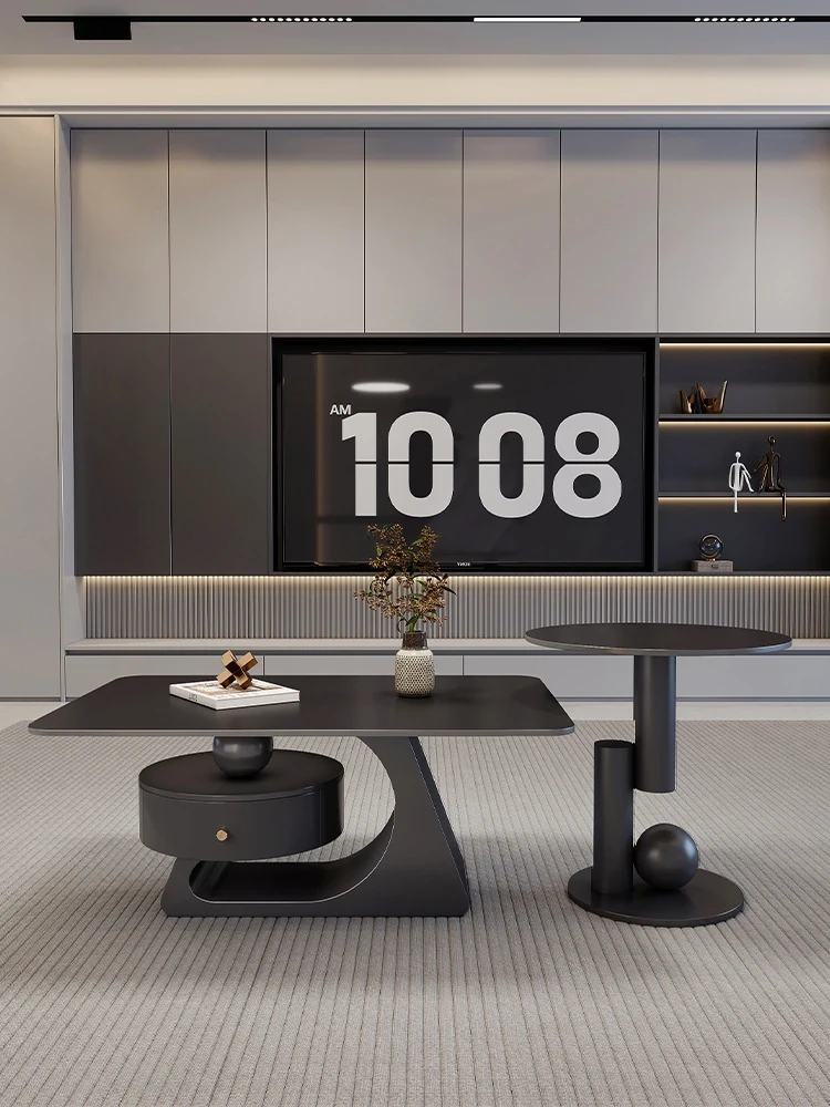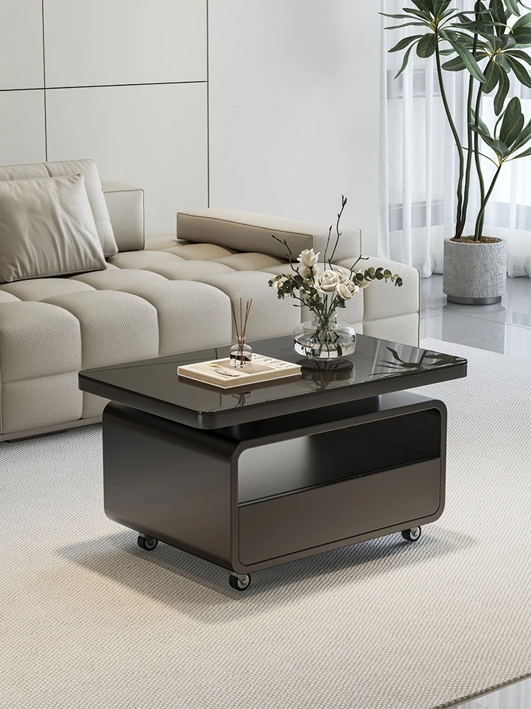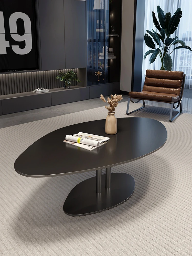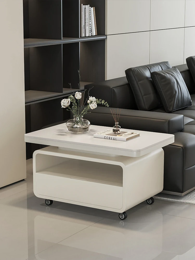 Modern Minimalist Movable Small Coffee Table - Italian Design for Living Room, High-End Lightweight Luxury, Creative Rock Plate Tea Table for Compact Spaces