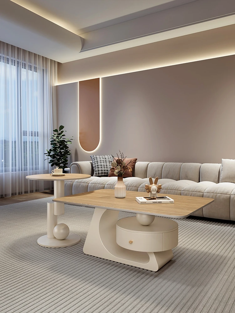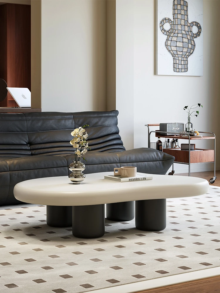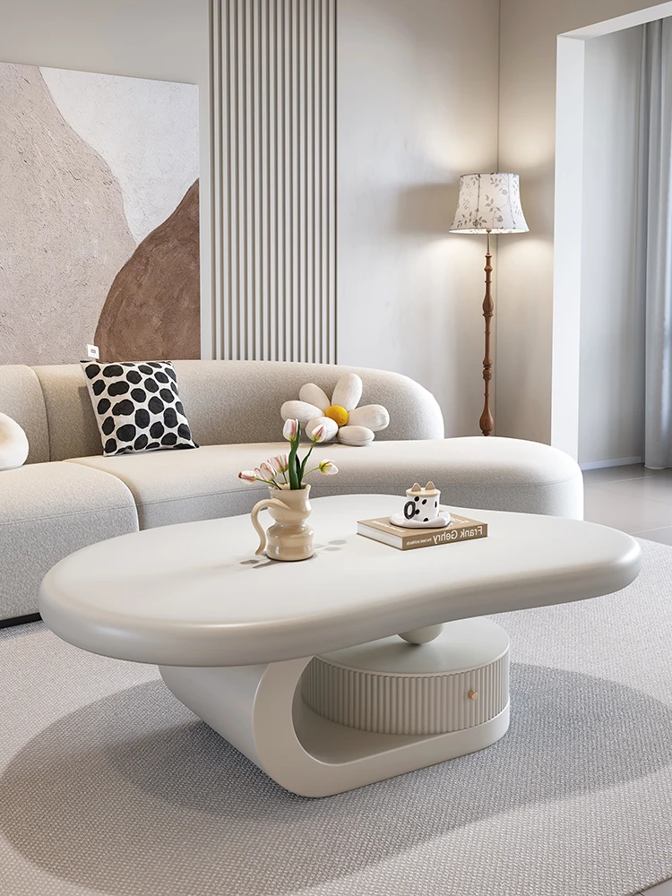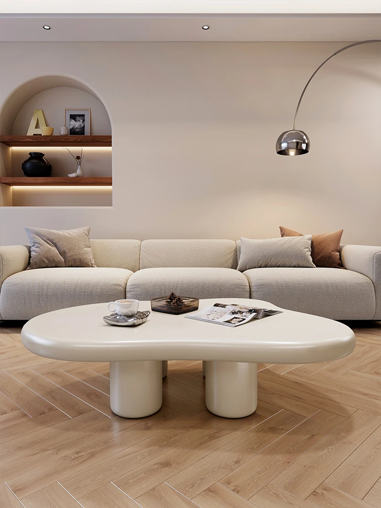 French Style Cloud Cream Coffee Table - Modern Minimalist Design for Living Room, Perfect for Small Spaces, Creative and Chic Home Accessory