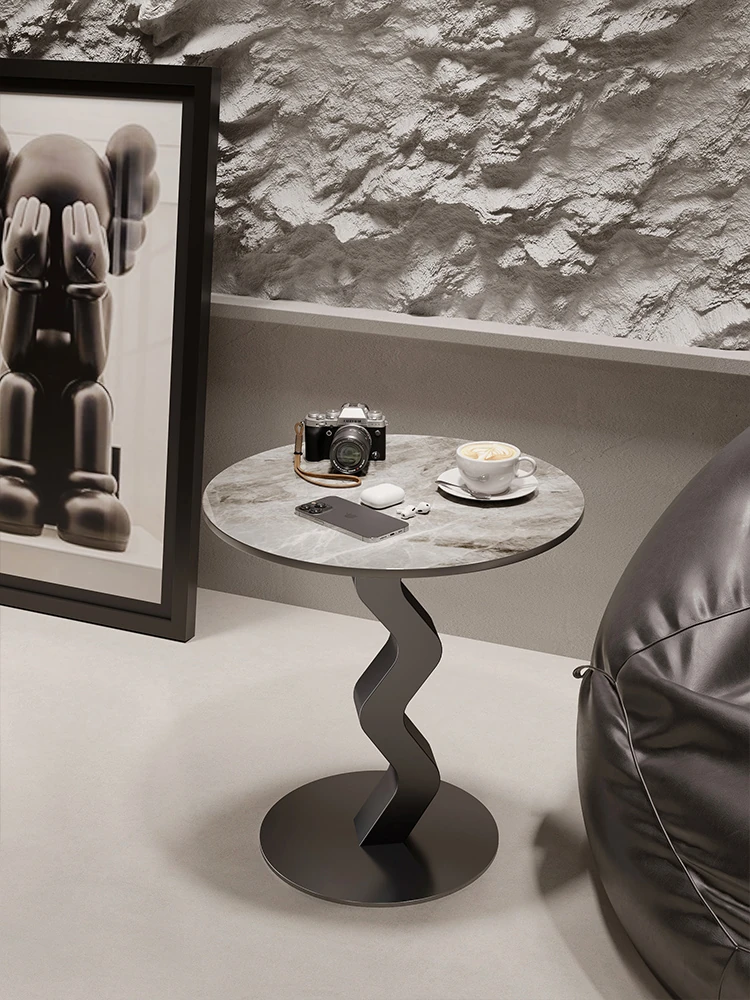 Designer Creative Iron Art Side Table for Living Room - Luxurious Minimalist Small Coffee Table with High-End Aesthetic and Rock Plate Top. Perfect for Elevating Your Space!