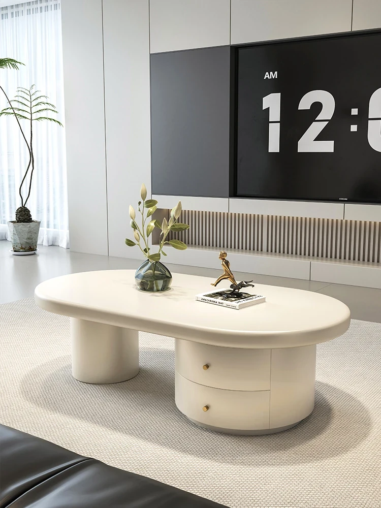 French-Inspired Creative Creamy Oval Coffee Table for Small Living Rooms - Modern Minimalist Design with Luxurious Touch, Perfect for Home Use
