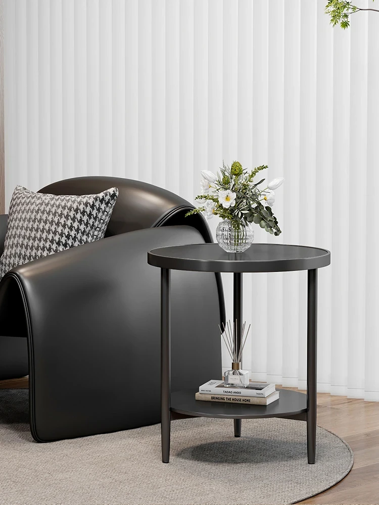 Italian Style Round Designer Sofa Side Table - Luxurious Black Marble Corner Shelf and Storage Cabinet for Living Room Decor