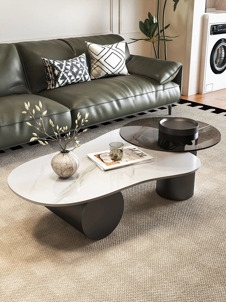 French Designer Minimalist Luxury Cloud Stone Glass Coffee Table - Stylish and Creative Small Space Solution for Chic Living Rooms