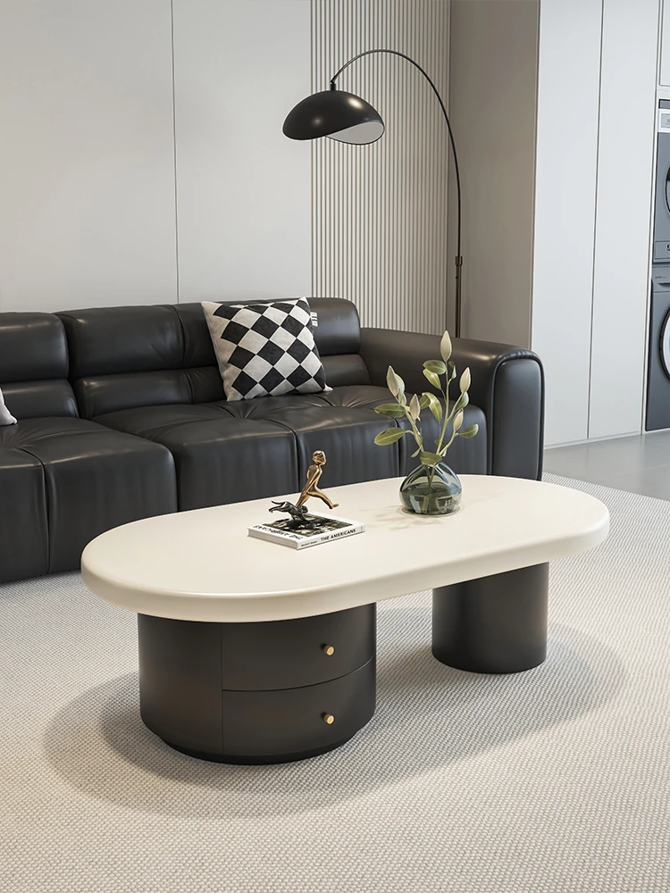 2025 New Elegant Oval Coffee Table for Living Room - Modern Minimalist Design in Cream Style, Perfect for Small Spaces