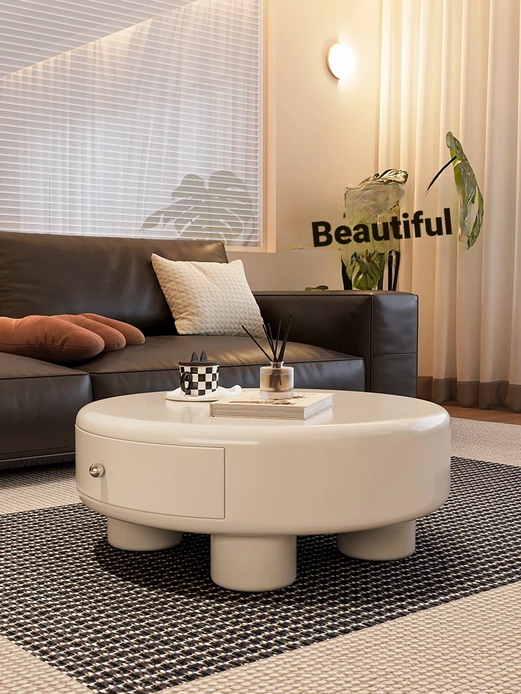 French Cream Round Coffee Table for Small Living Rooms – Minimalist Modern Design for Home Use, 2024 New Collection, Elegant and Luxurious Touch