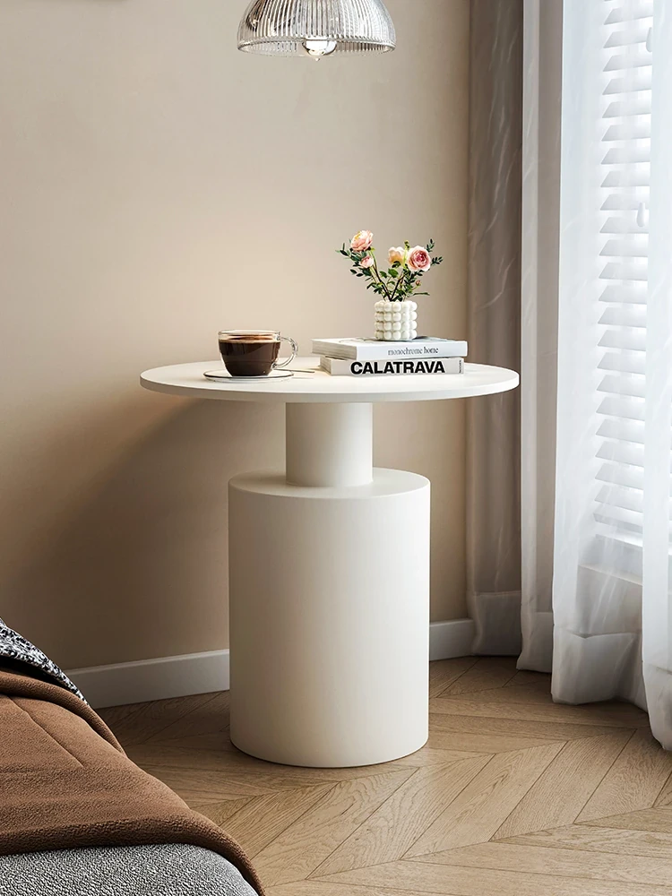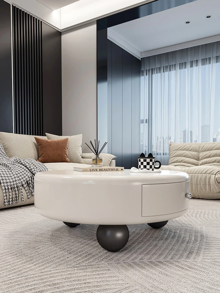French Designer Creative Round Creamy Coffee Table - Minimalist and Elegant Living Room Table for Small Spaces