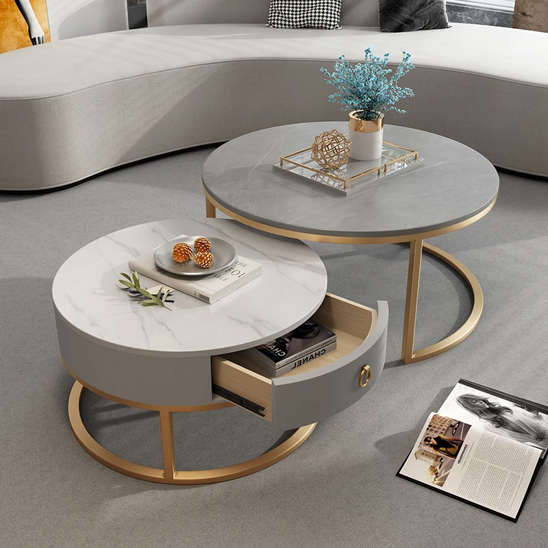Modern Luxury Round Coffee Table - Stylish Minimalist Design for Living Room & Small Spaces, Featuring Durable Rock Slab Surface - Trending New Arrival 2024!