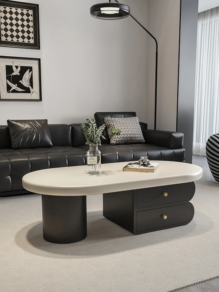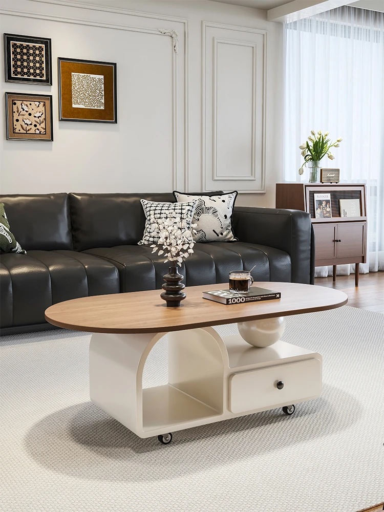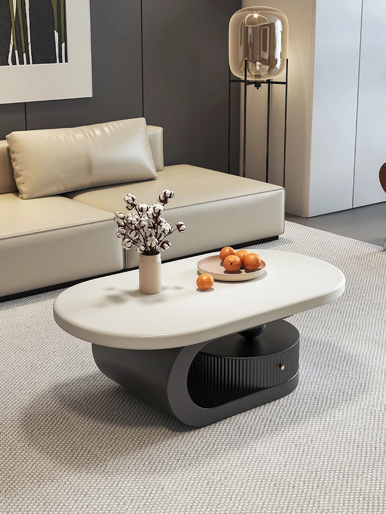 Modern Minimalist Creative Coffee Table - Elegant Cream Oval French Design for Small Living Spaces, Perfect for Home Use with a Touch of Luxury.