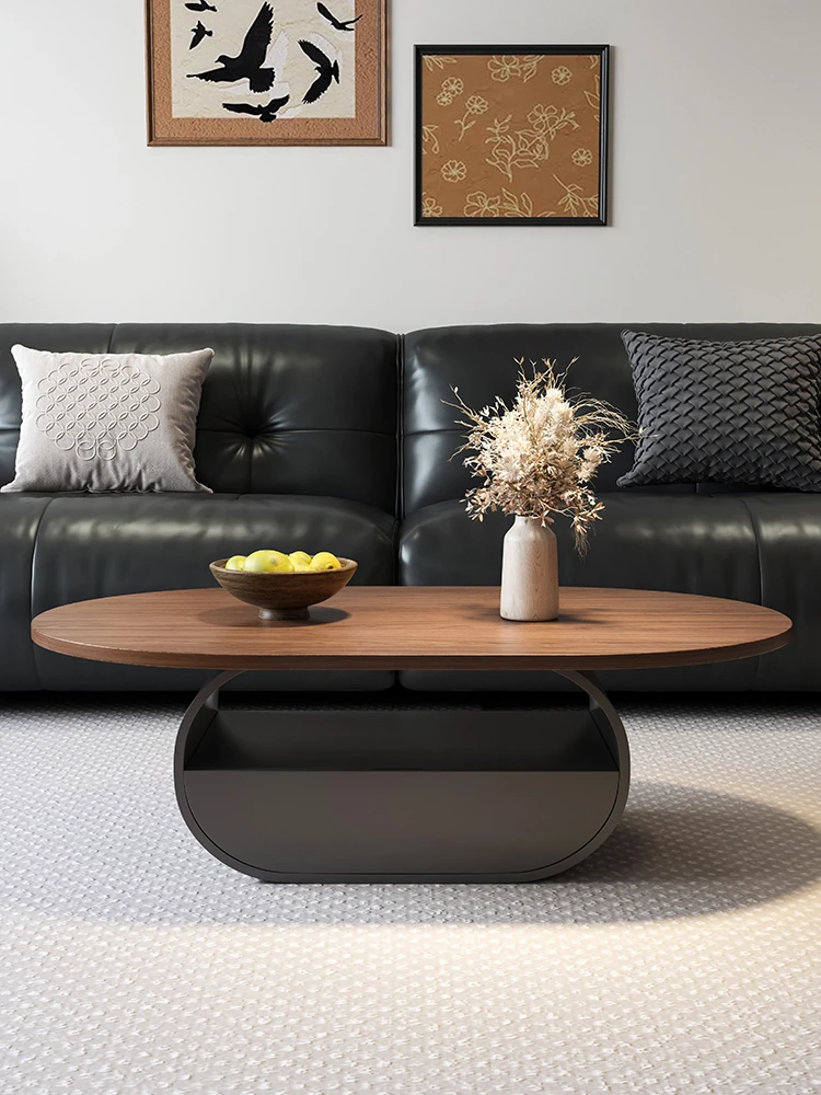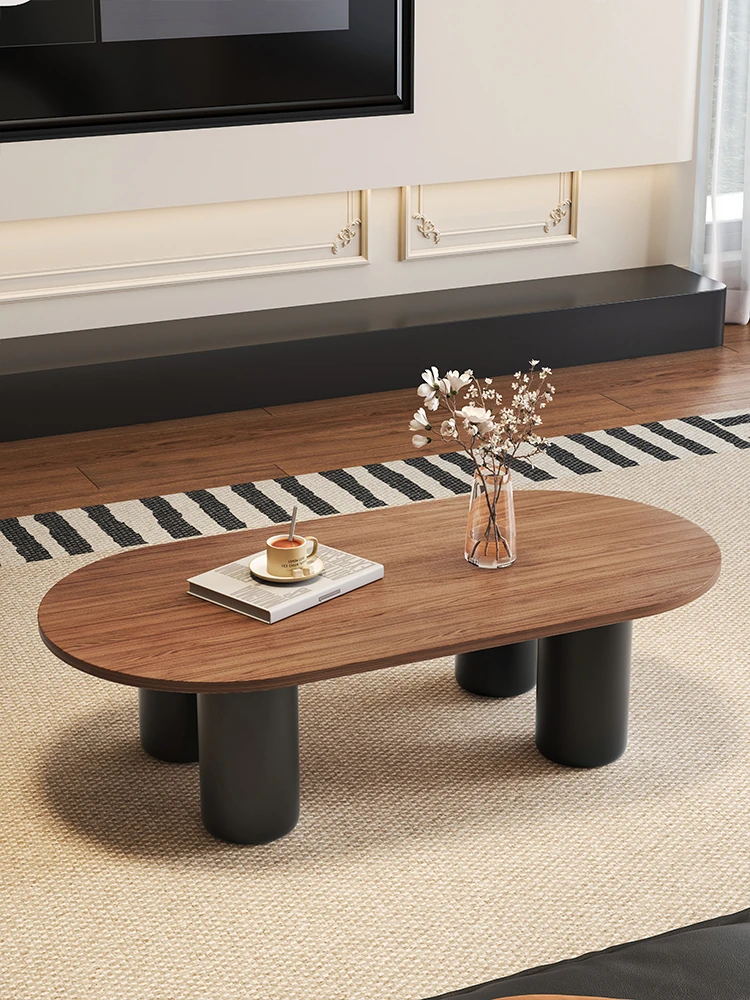 Minimalist French-style Vintage Walnut Wood Coffee Table – Elegant Oval Design for Small Living Rooms and Home Use