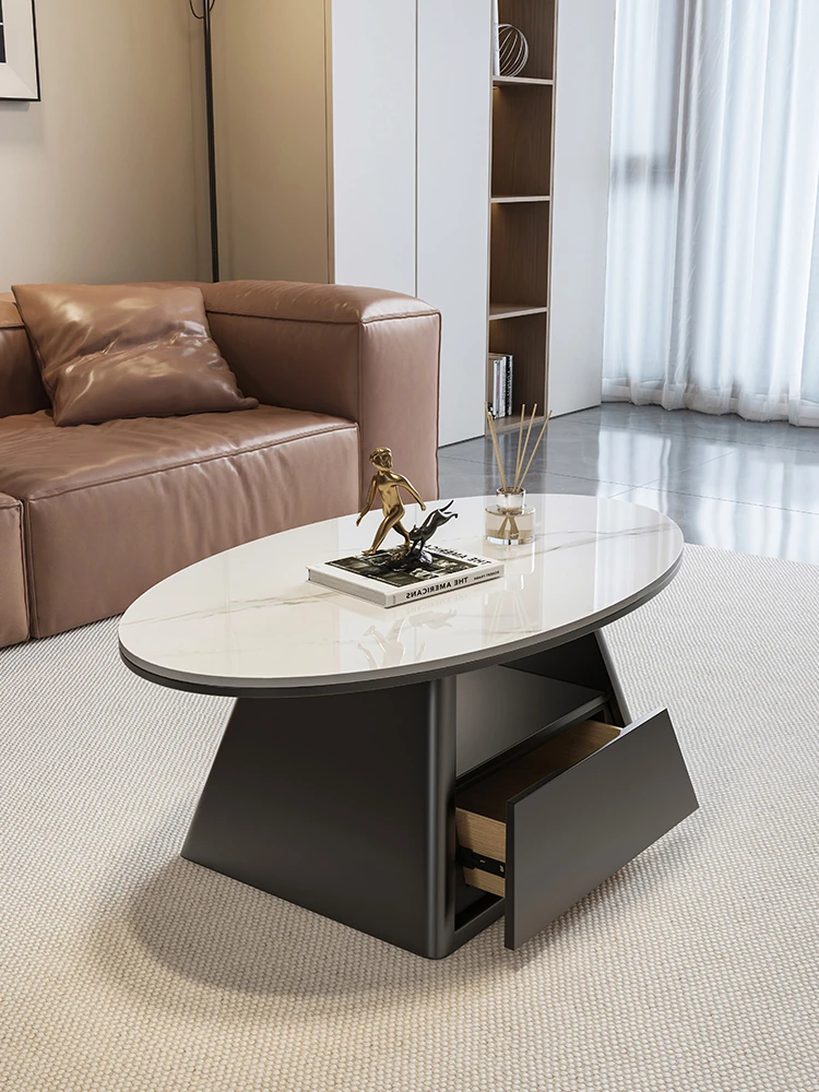 Designer Minimalist Oval Coffee Table - Modern and Elegant Rock Plate for Small Living Rooms - Chic and Luxurious Touch for Your Home