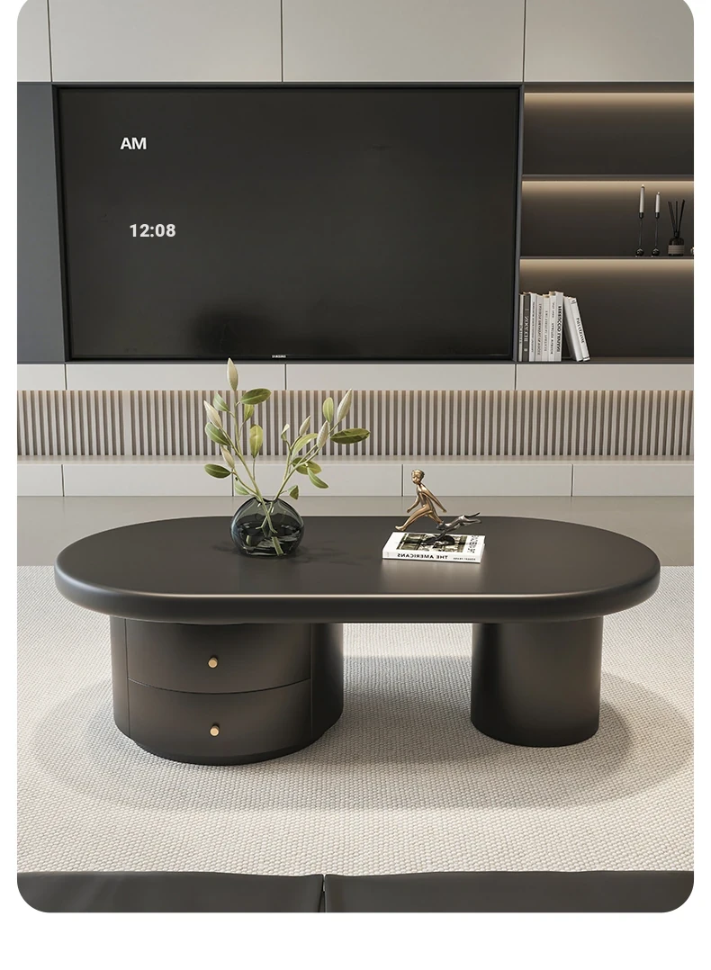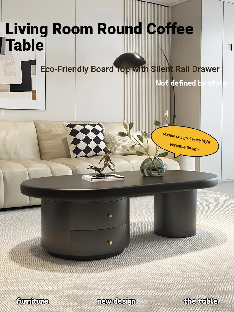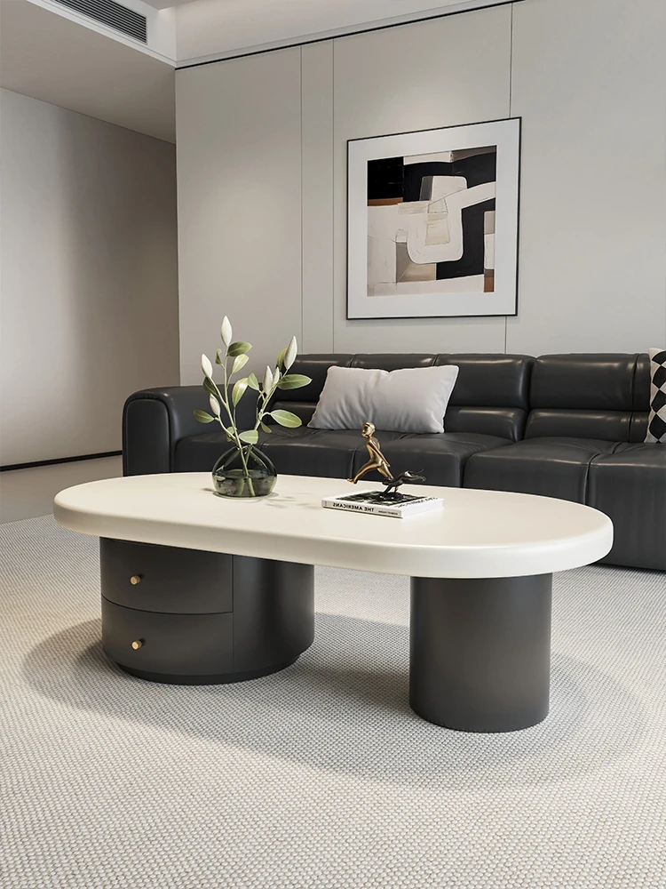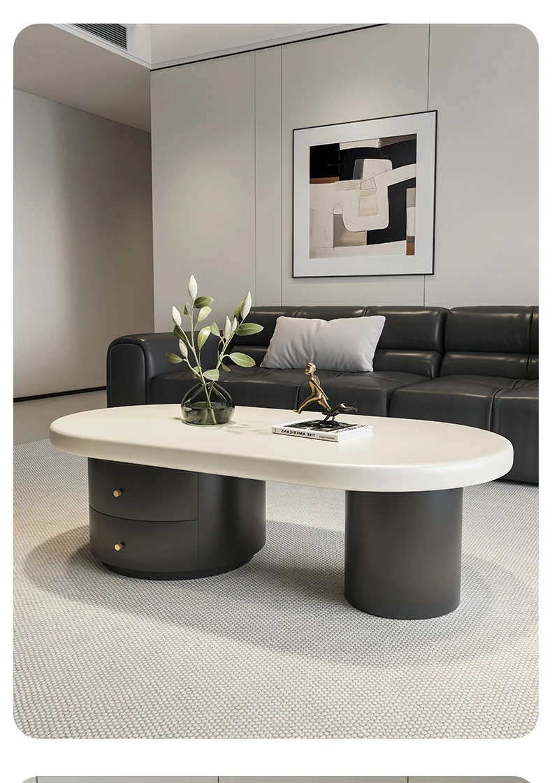 2025 New Elegant Oval Coffee Table for Living Room - Modern Minimalist Design in Cream Style, Perfect for Small Spaces