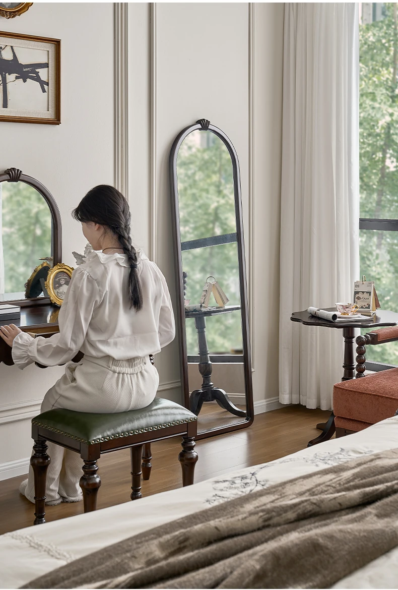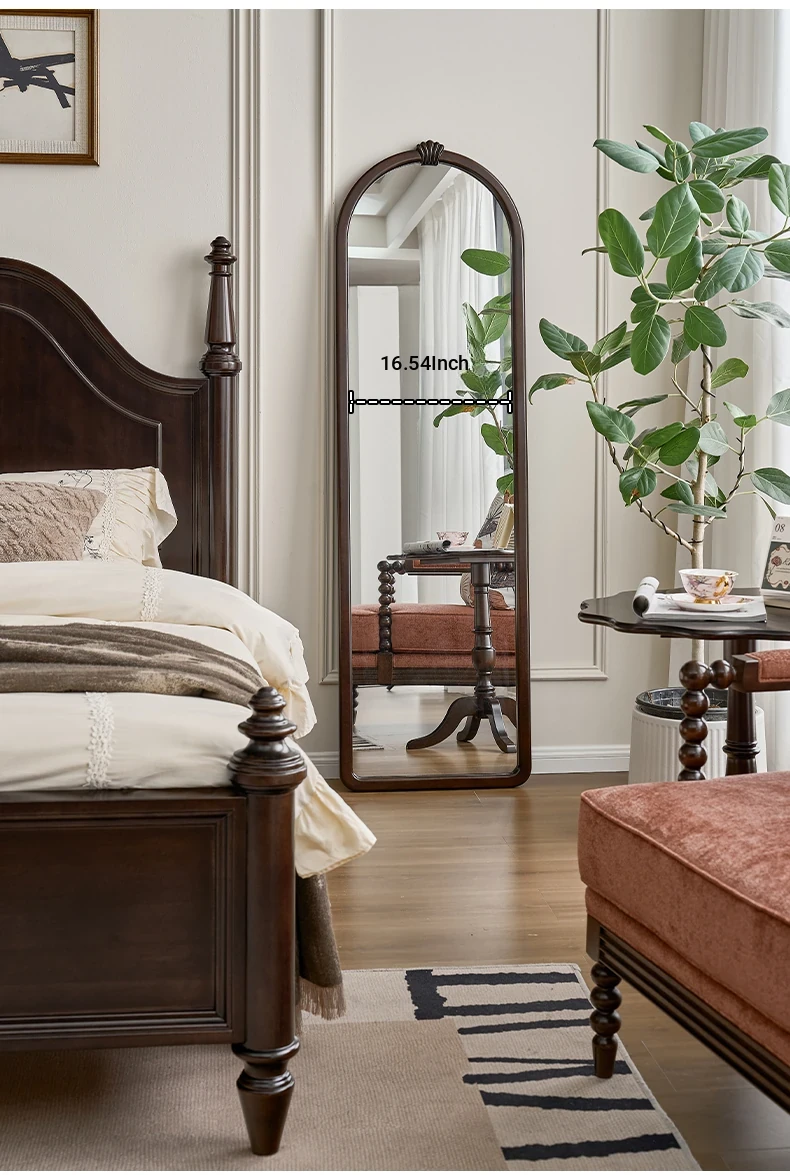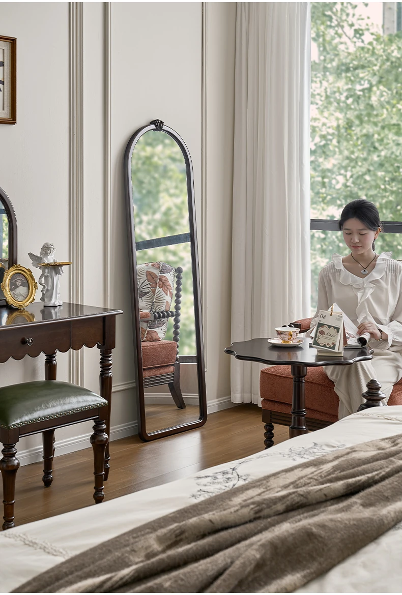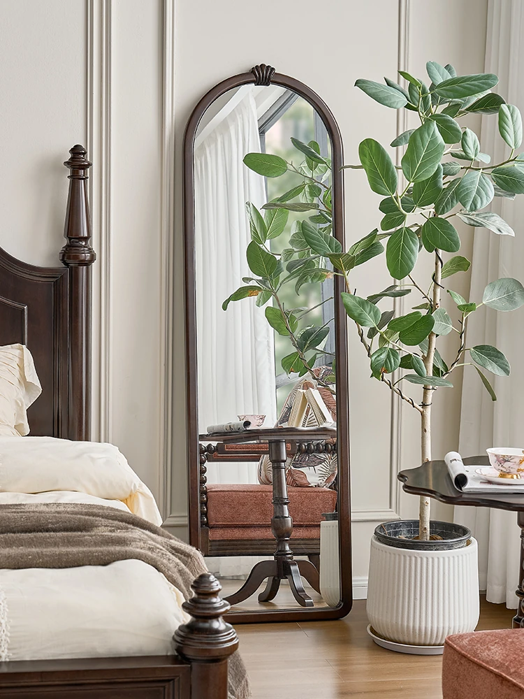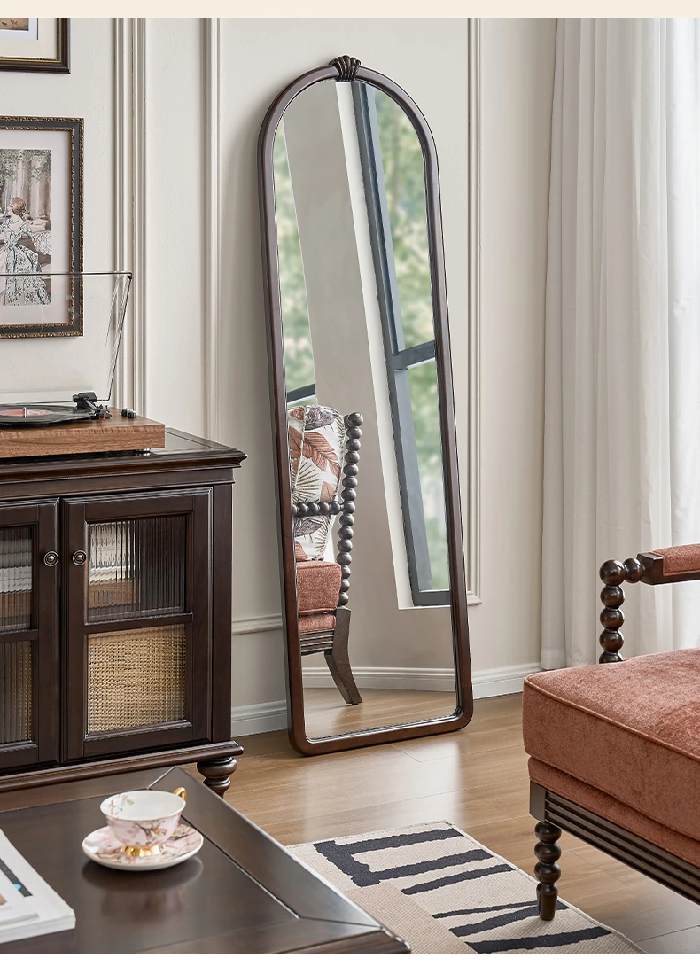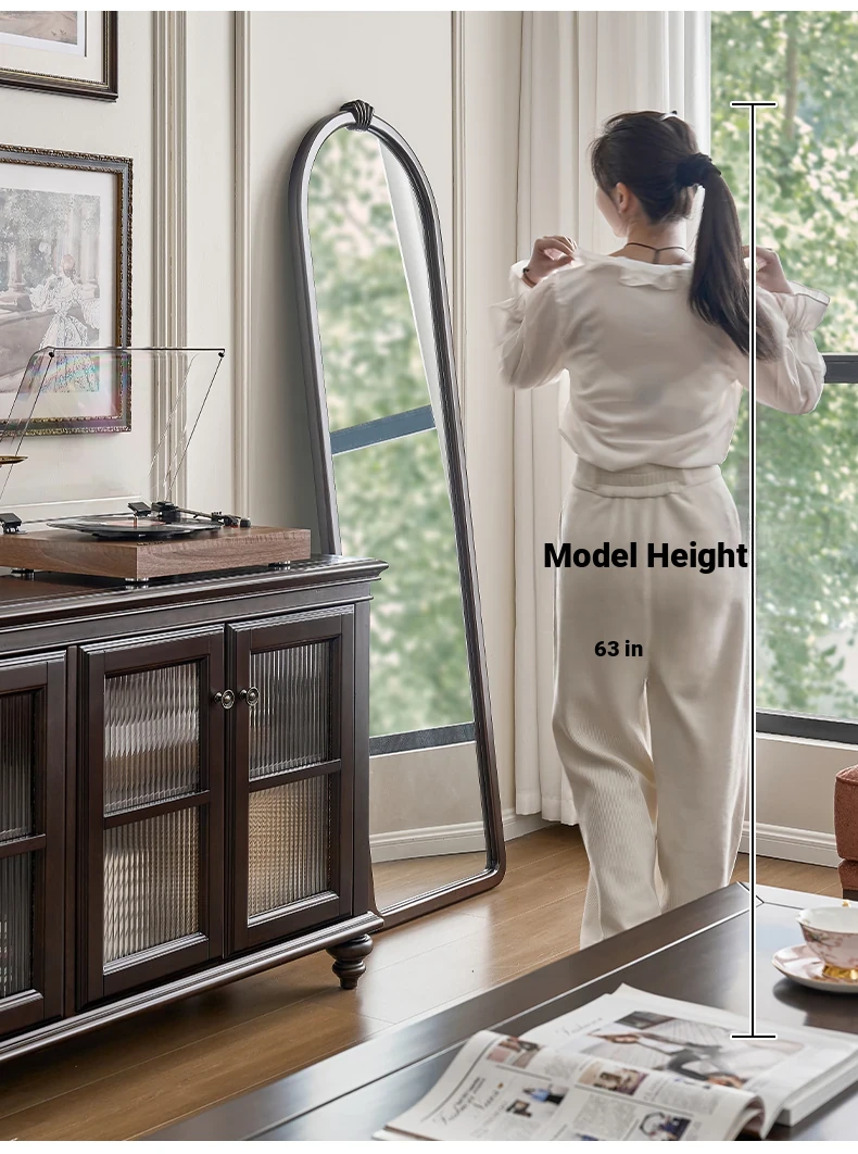 Elegant French Full-Length Dressing Mirror - Movable Floor Mirror for Bedroom, Wall-Mounted Option, Stylish American Home Decor, Premium Quality Design