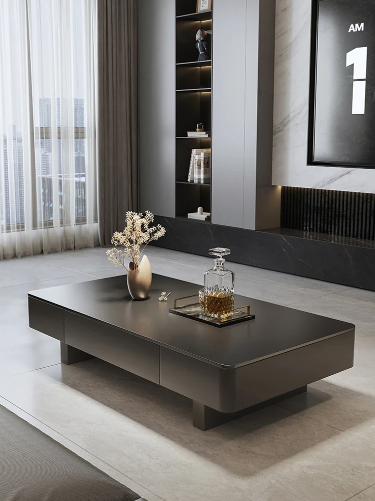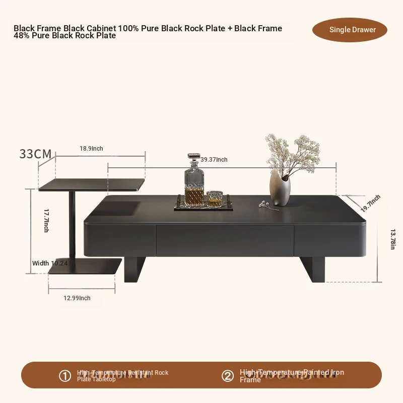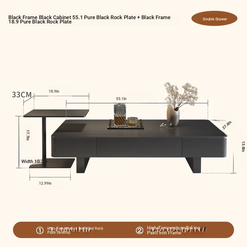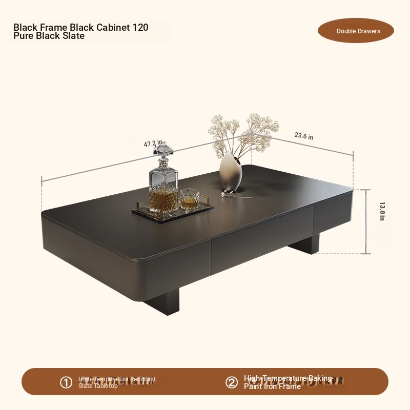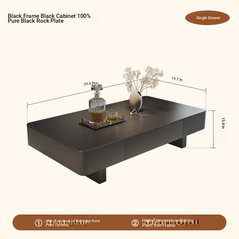 Black rack black cabinet 100 pure black rock plate large coffee table