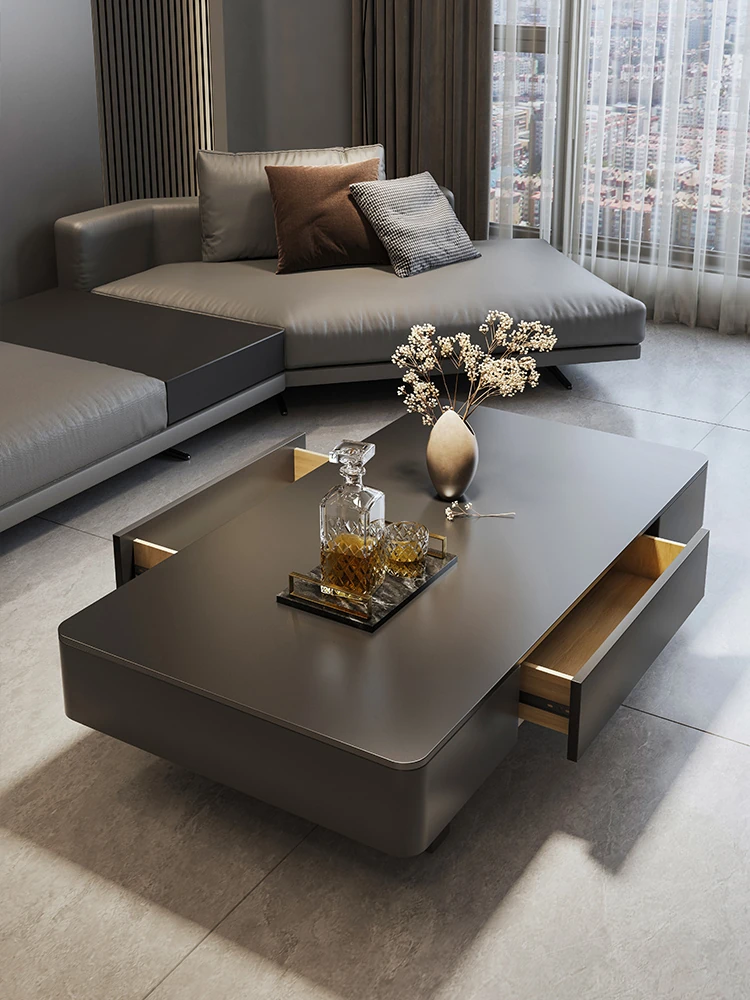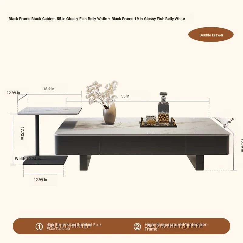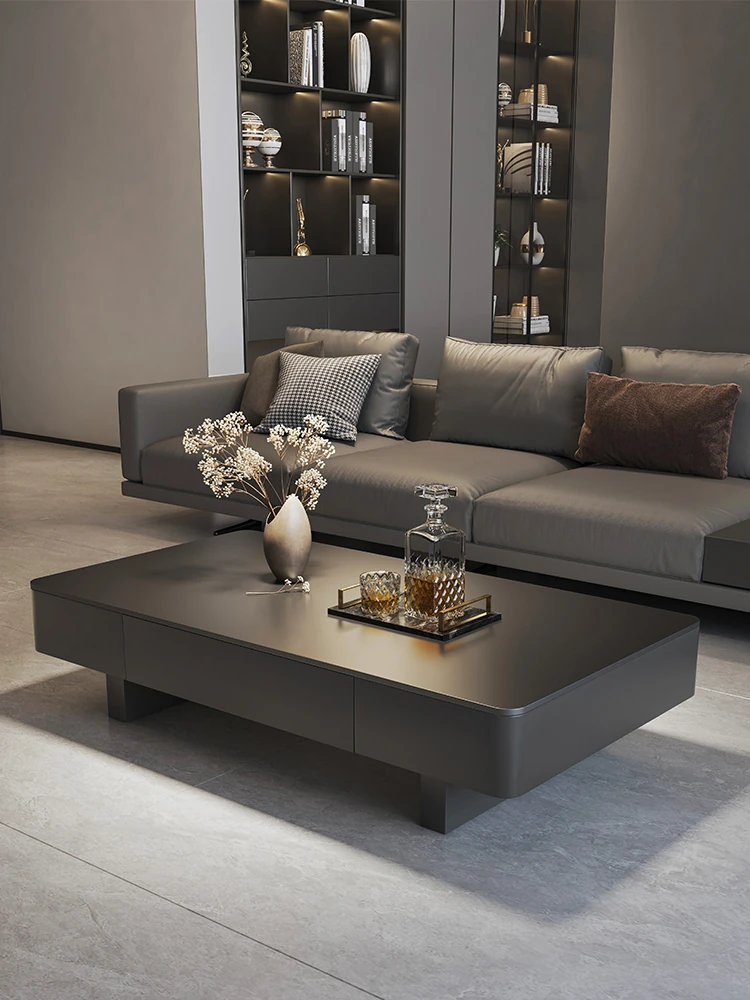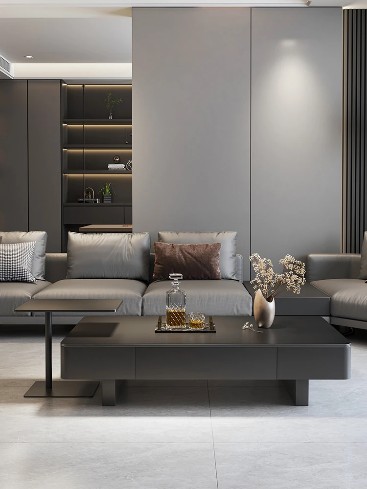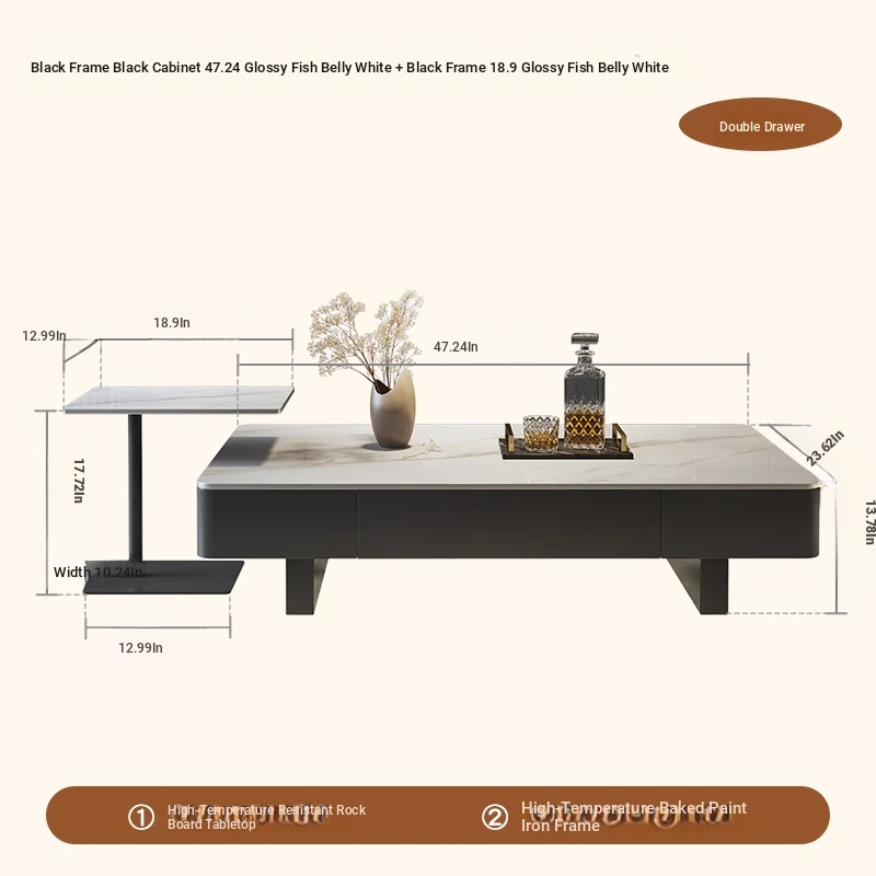 Black rack black cabinet 100 pure black rock plate large coffee table