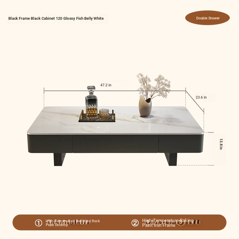 Black rack black cabinet 120 pure black rock plate large coffee table