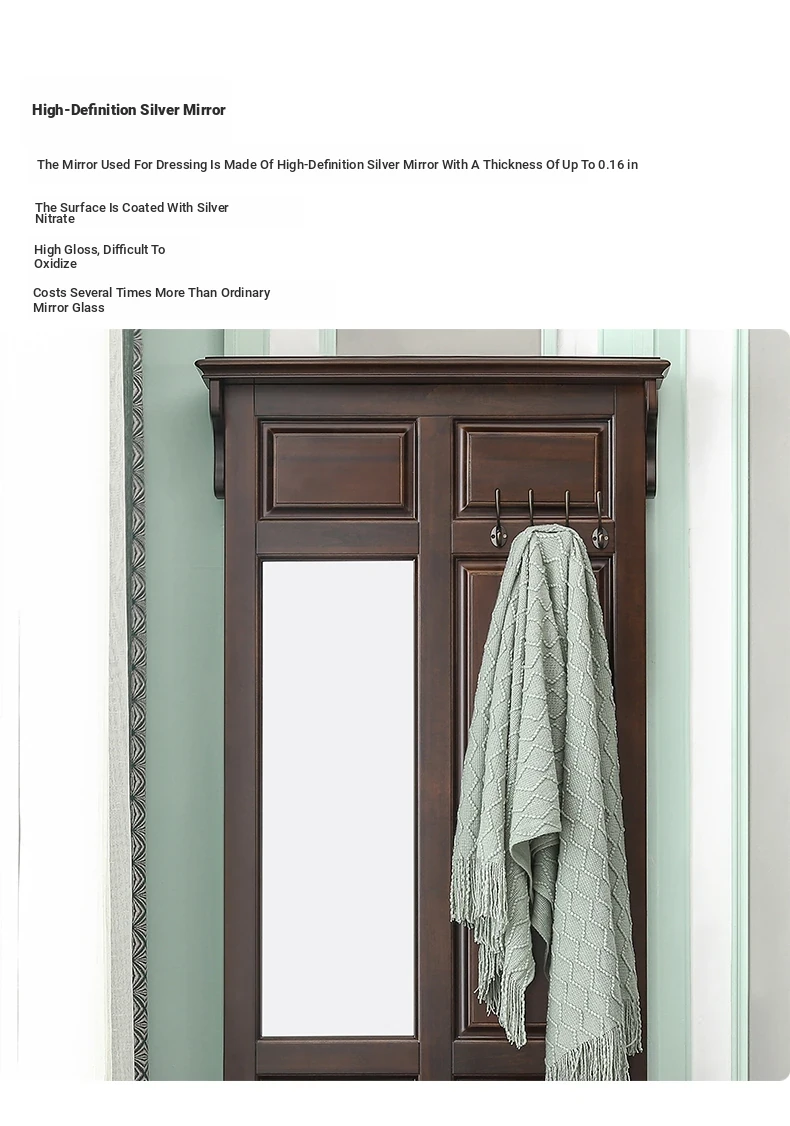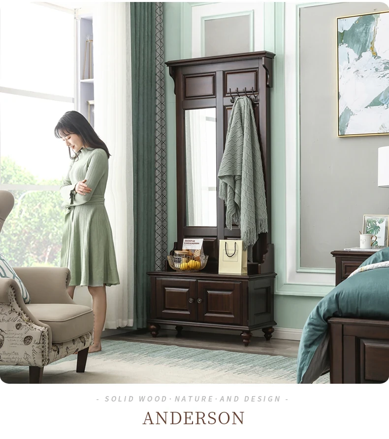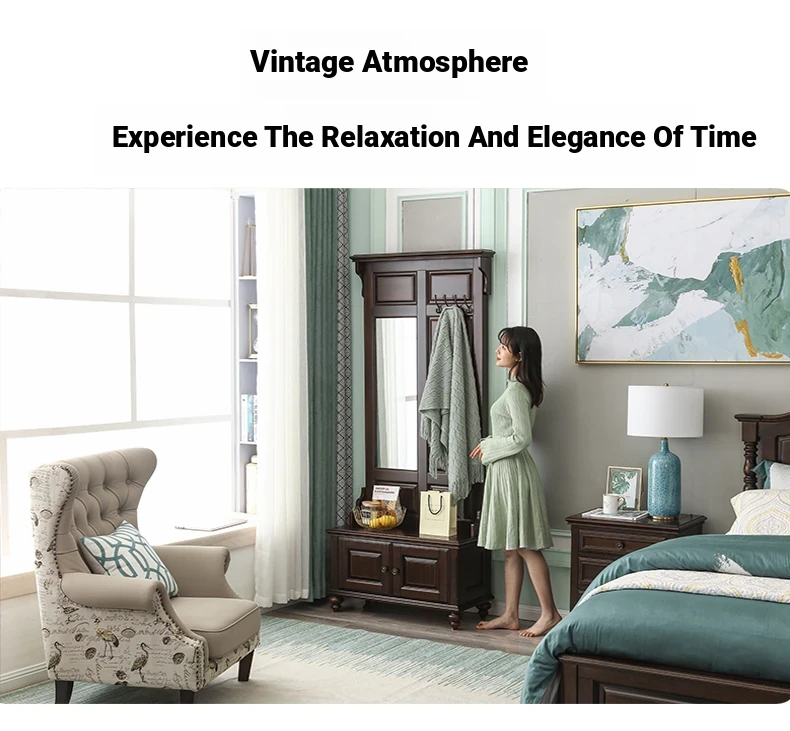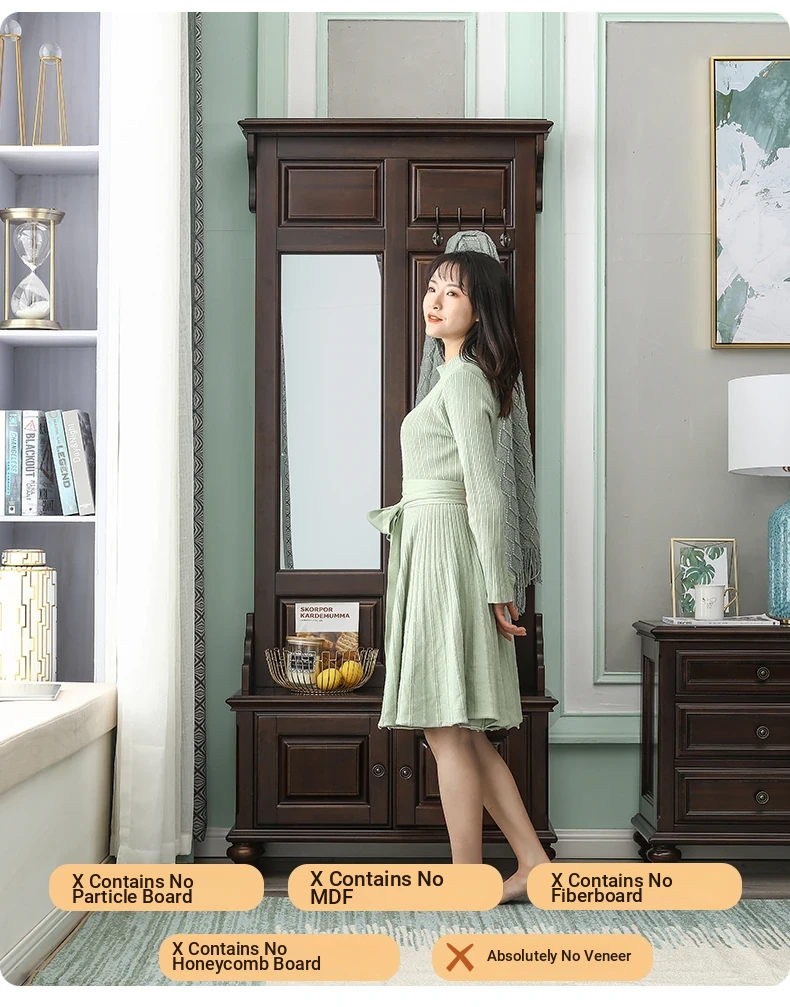 Rustic American Full-Length Mirror - Solid Wood Floor Mirror with Storage Cabinet, Chic Clothing Rack for Bedroom, Stylish Home Organization Solution