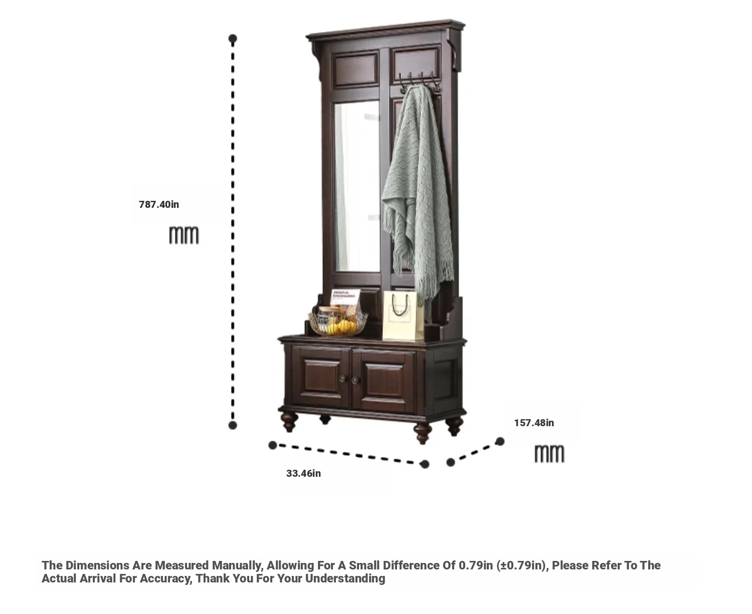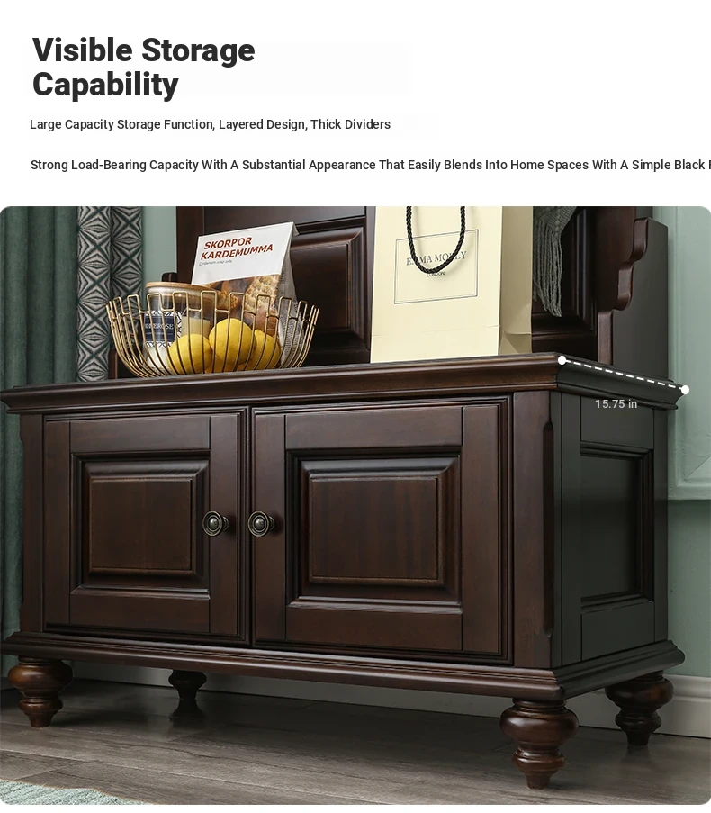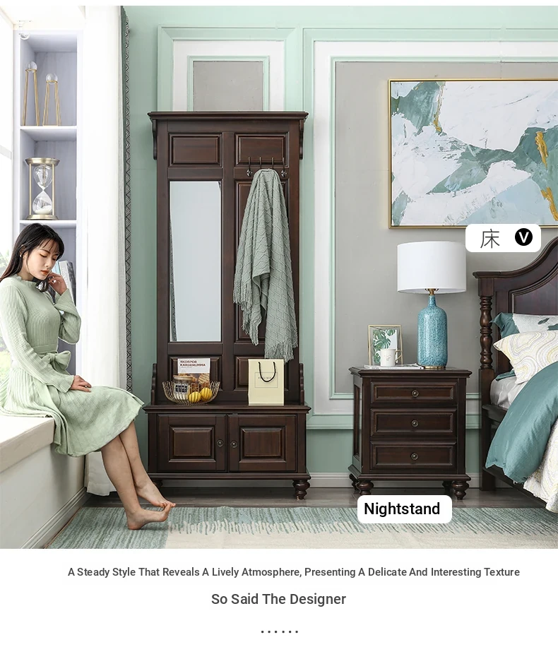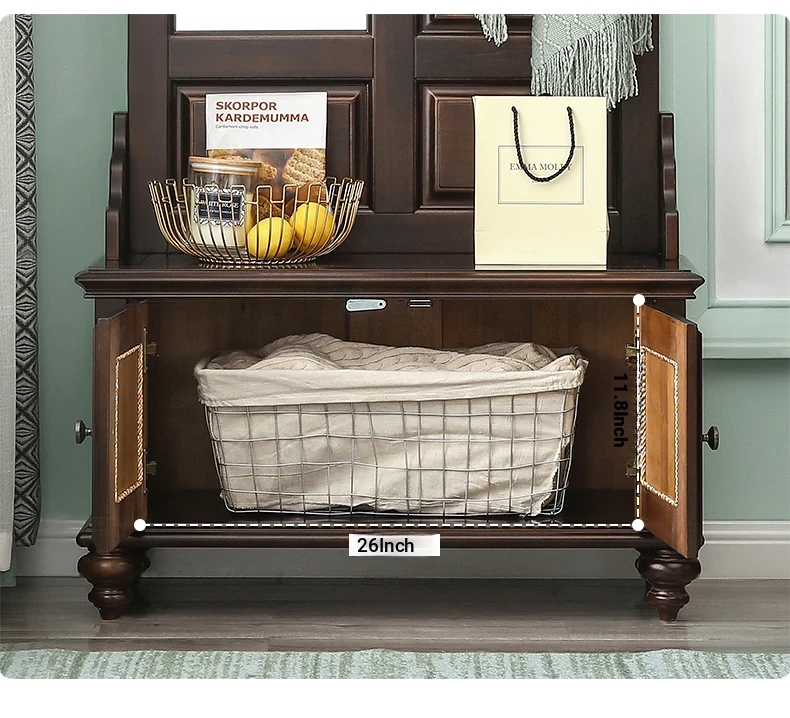 Rustic American Full-Length Mirror - Solid Wood Floor Mirror with Storage Cabinet, Chic Clothing Rack for Bedroom, Stylish Home Organization Solution