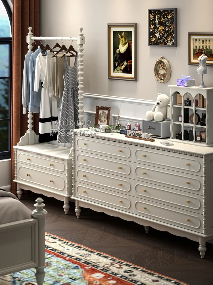 Creamy Wooden Dresser - Wall-Mounted Storage Cabinet for Living Room, French and American Style Bedroom Bedside Chest with Drawers, Perfect for Organizing Your Space.