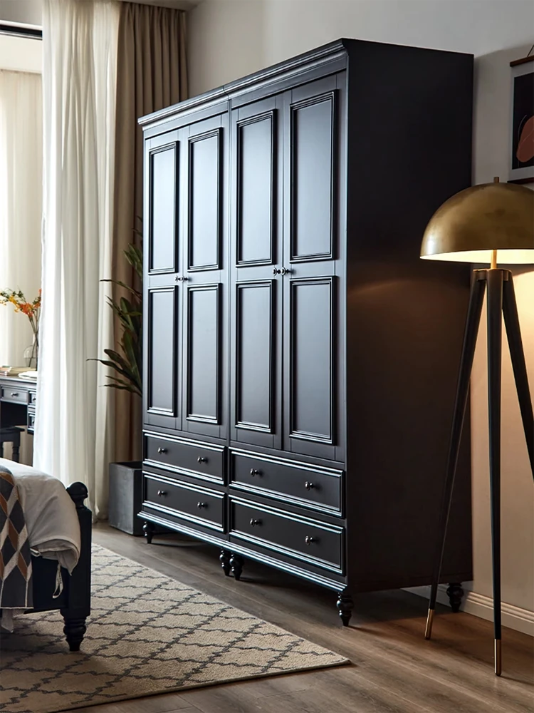 American-Style Light Luxury Solid Wood Wardrobe - Compact Vintage Black Minimalist Modern Storage Cabinet for Bedroom - Perfect for Small Spaces