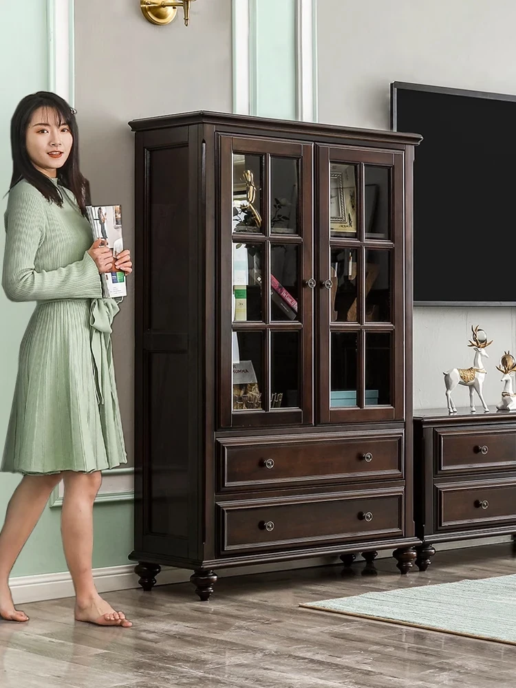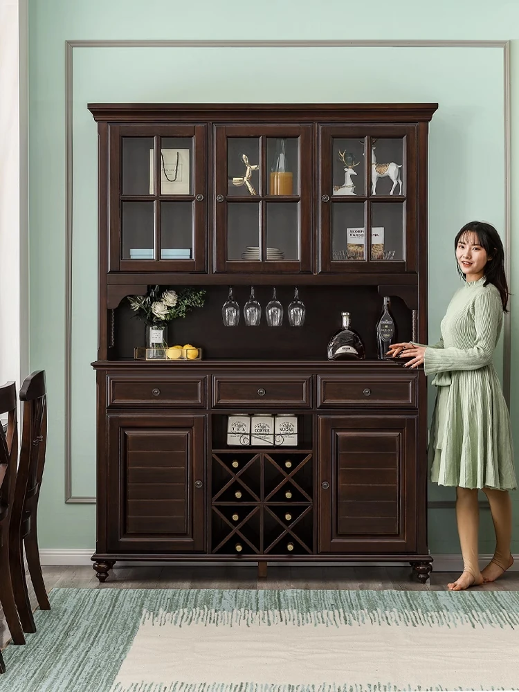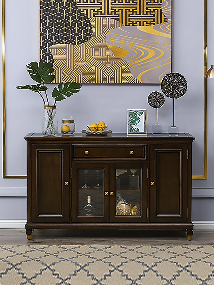 American Solid Wood Wine Cabinet - Elegant Storage and Display Unit for Living Room, Retro European Style Sideboard for Dining Room and TV Stand, Perfect for Chic Home Décor.