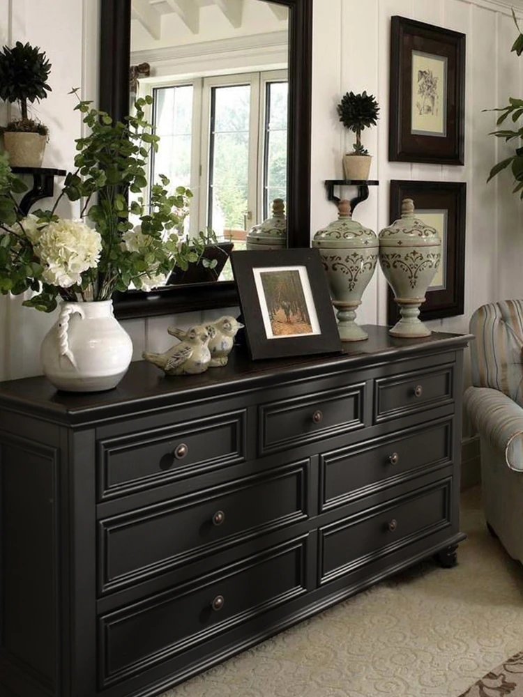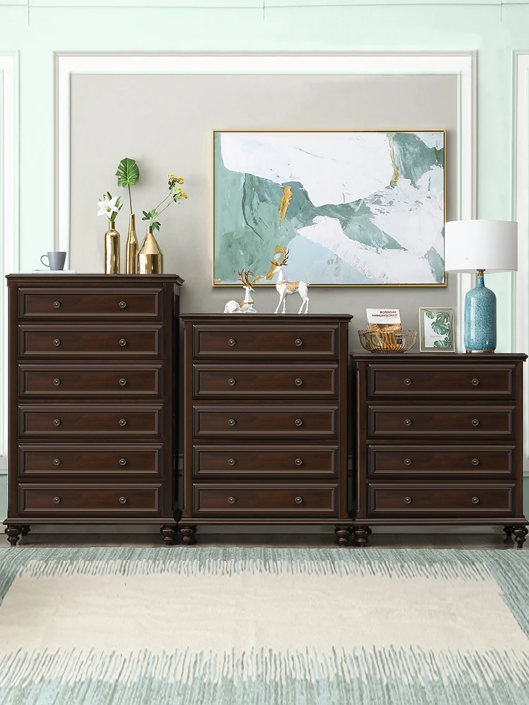 Elegant Black American Solid Wood Chest of Drawers - Versatile French-Style Nightstand and Storage Cabinet for Bedroom and Living Room, Perfect for Wall Placement and Organizing Your Space.