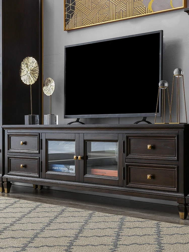 French Solid Wood TV Stand - Stylish and Functional American Vintage 2025 Model Living Room Storage Cabinet for TVs and Essentials, Perfect for Your Home Decor!