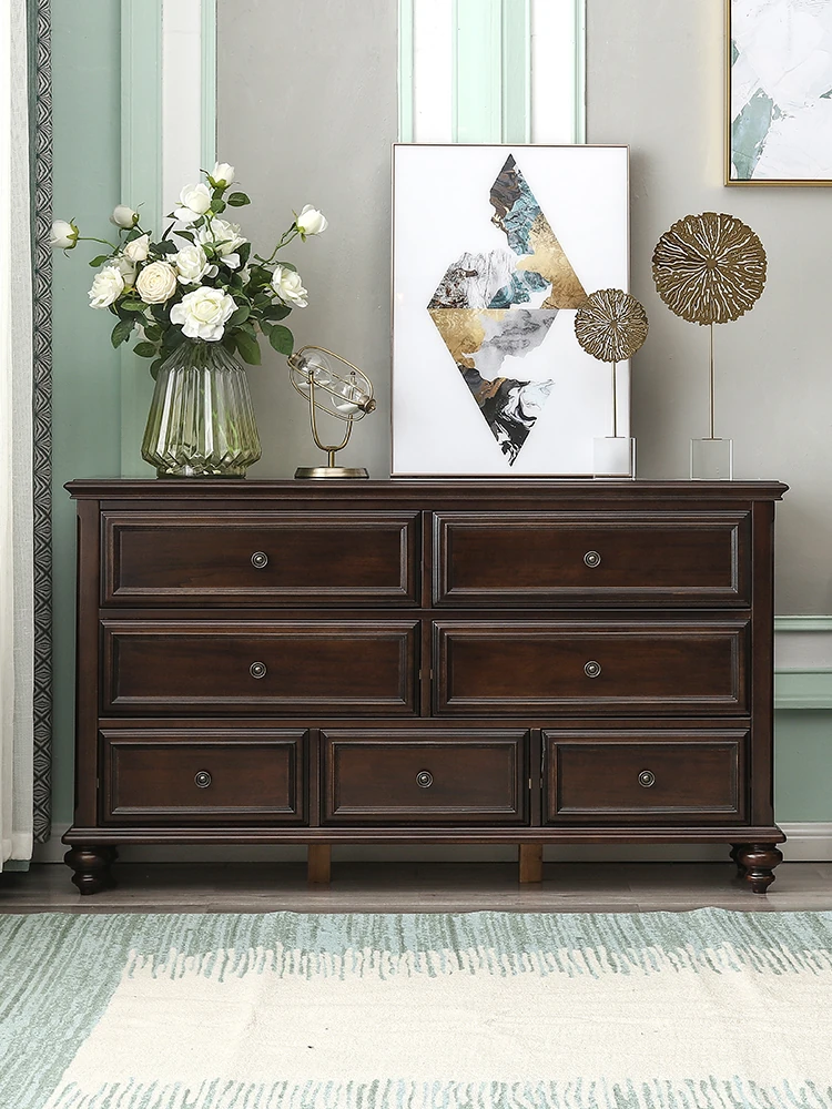 American Style Solid Wood Country Seven-Drawer Chest - Chic Vintage European Storage Cabinet with Elegant Drawers for Stylish Organization