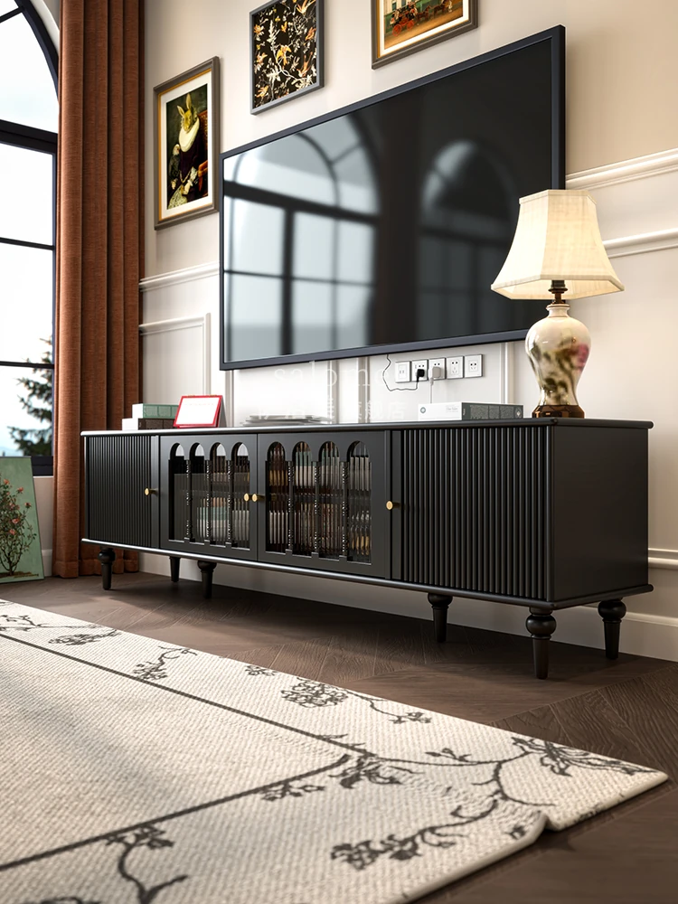 American Solid Wood Floor TV Cabinet - French Vintage Style Living Room Storage Unit, 2025 New Release with Elegant Design for Home Organization and Style.