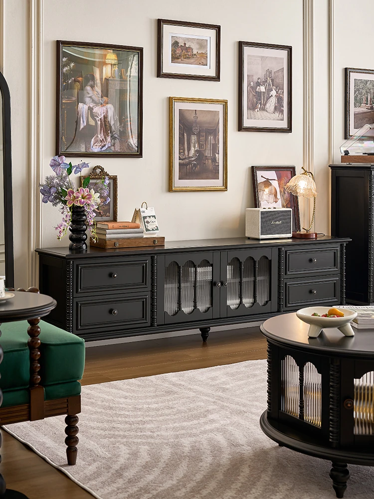 French Solid Wood TV Stand - Perfect for Small Living Rooms in 2025! Stylish American Light Luxury Design, Wall-Mounted for Space Efficiency and Elevated Aesthetics. Ideal for Modern Homes!