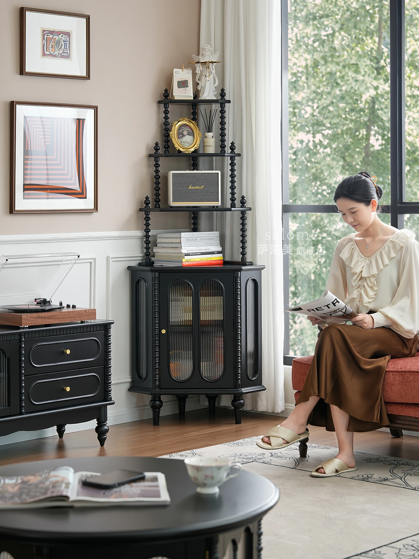 French-style Solid Wood Corner Cabinet - Elegant Triangular Storage Shelf for Bedroom or Living Room - Ideal for Organizing and Displaying Décor, Perfect for Small Spaces