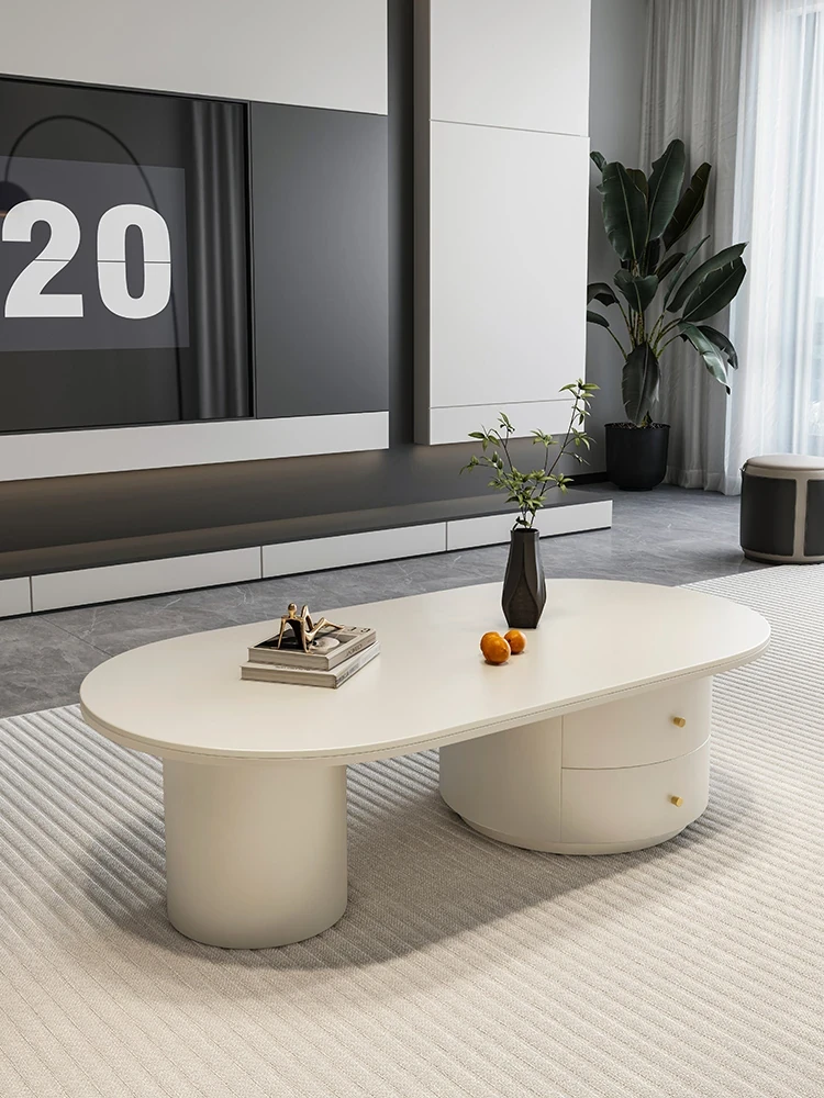 Elegant Italian-style Oval Coffee Table - Modern Luxury Rock Slab Design for Small Living Spaces, Perfect for Your Home!