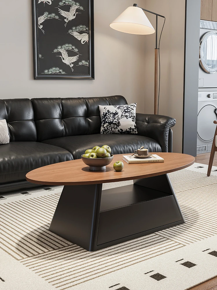 Minimalist Luxury Oval Walnut Wood Coffee Table - Retro Mid-Century Style for Small Living Spaces and Home Use
