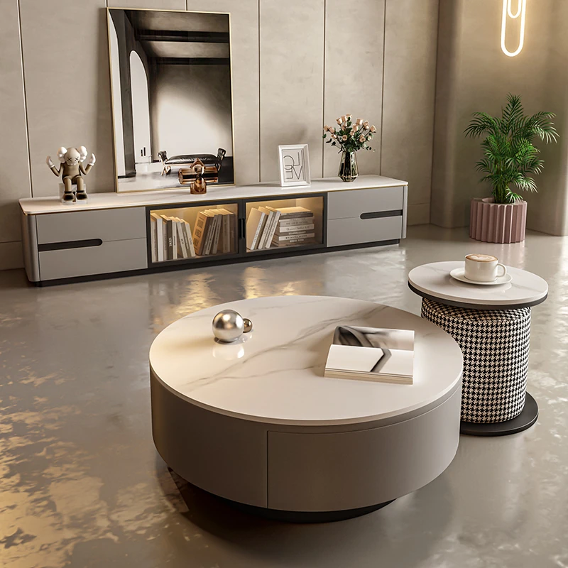 Designer Round Creamy Style Creative Coffee Table Set for Small Apartments - Modern Minimalist Storage Solution for Living Room