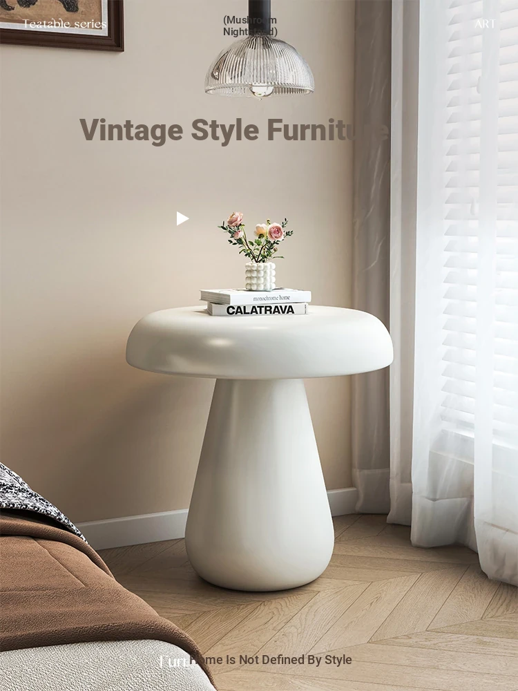 Creative Mushroom Bedside Table - Stylish Solid Wood Round Side Table for Home Bedroom, Perfect for Sofa Corners, Elegant and Chic Design