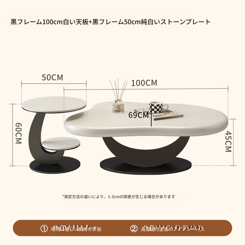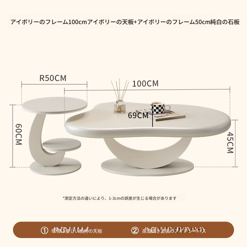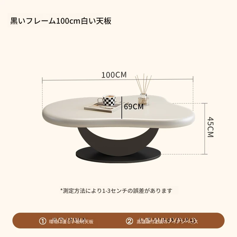 米白フレーム100cm白いテーブル+米白フレーム50cm純白の天板