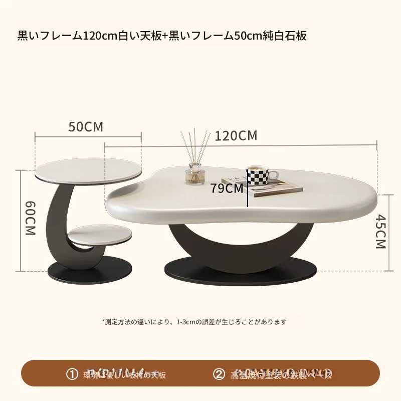 米白フレーム120cm白いテーブル+米白フレーム50cm純白の天板
