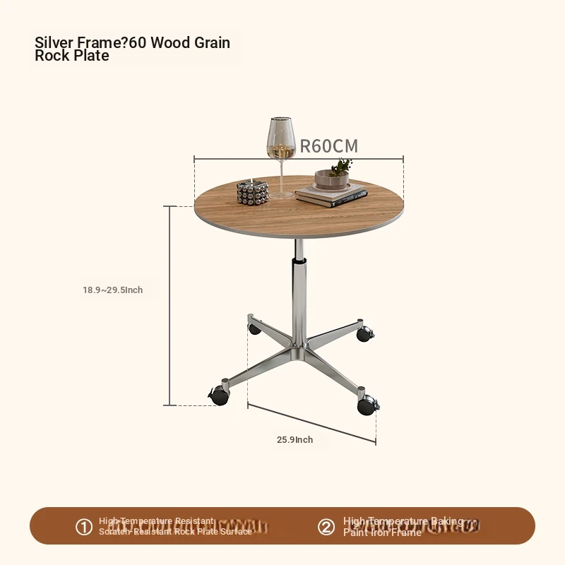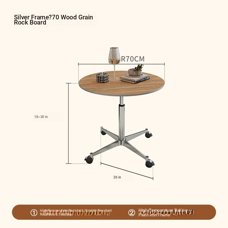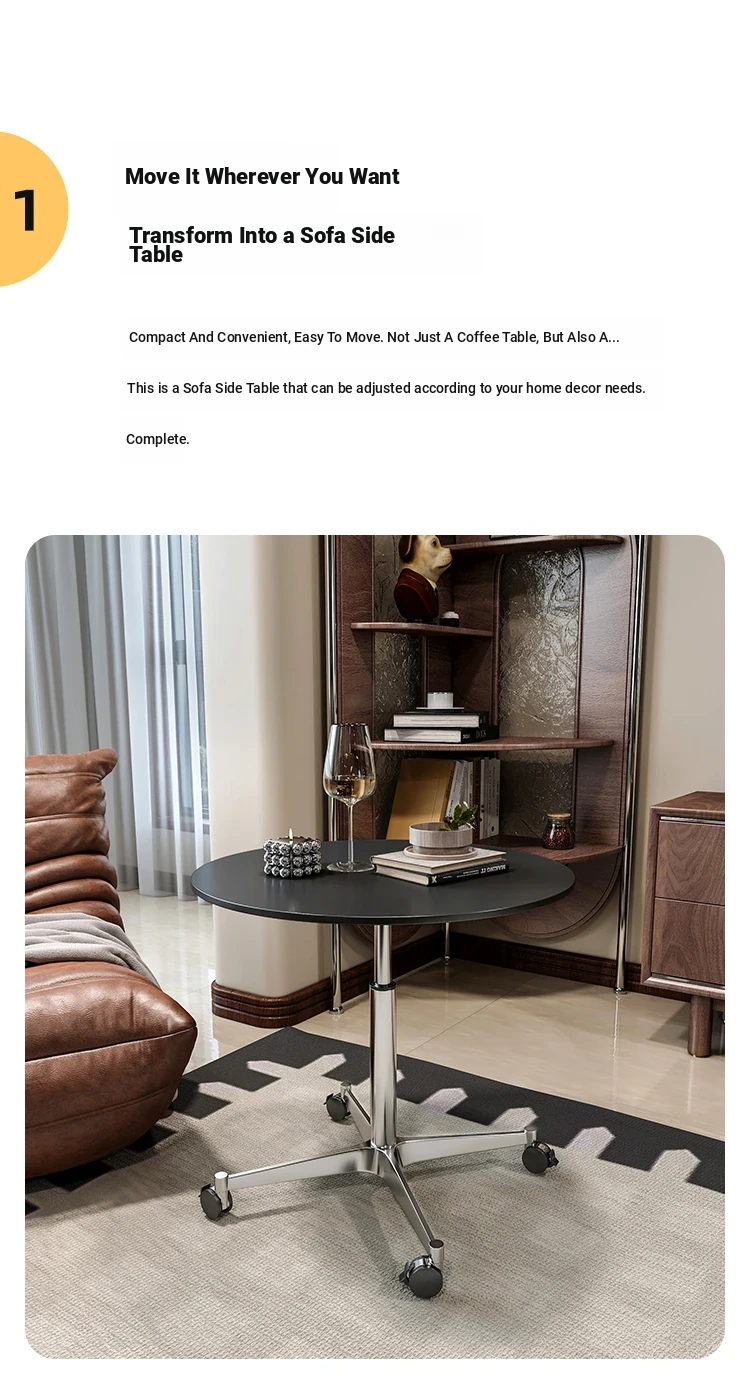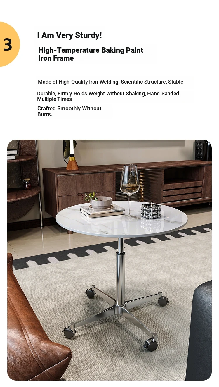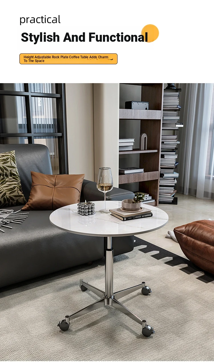 Elevate Your Living Space with Our Adjustable Round Coffee Table – Perfect for Small Apartments and Balconies! Featuring a Chic Vintage Design, This Compact Rock Plate Table is Ideal for Cozy Gatherings.