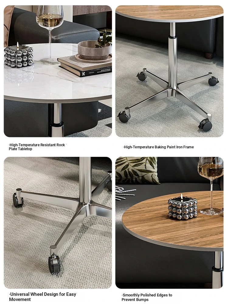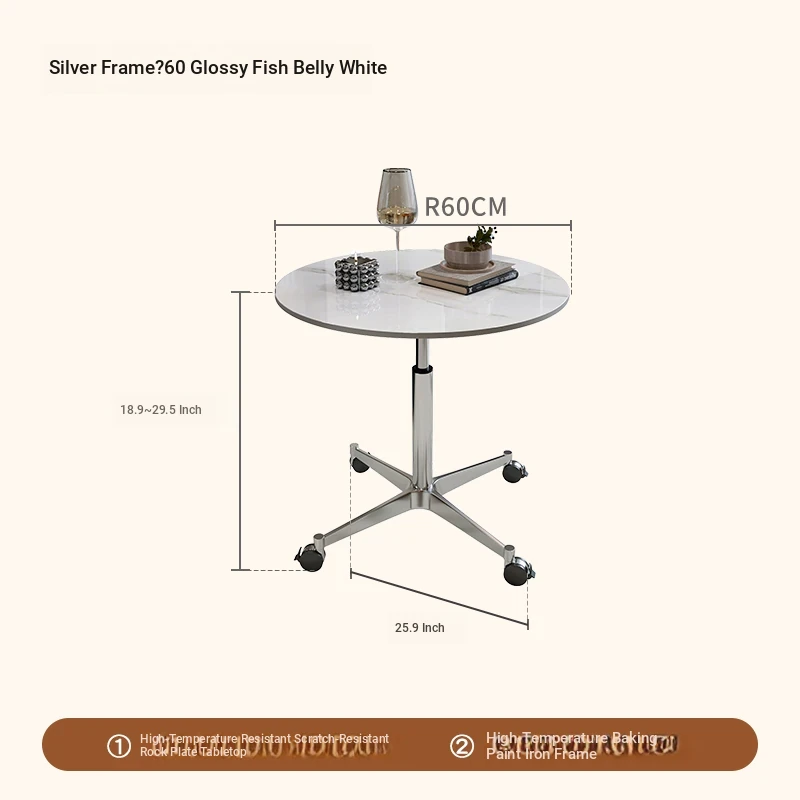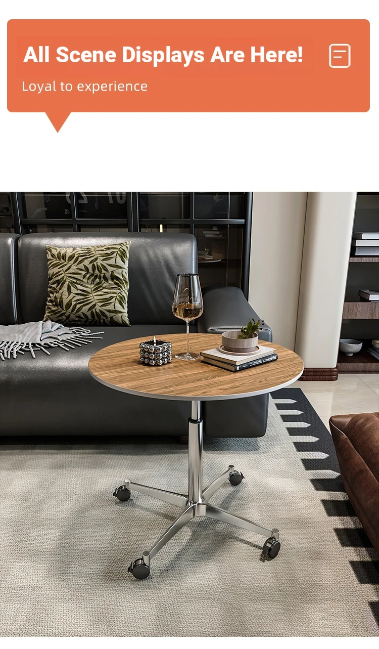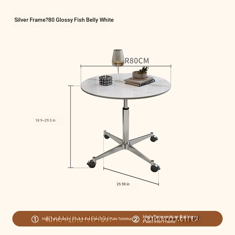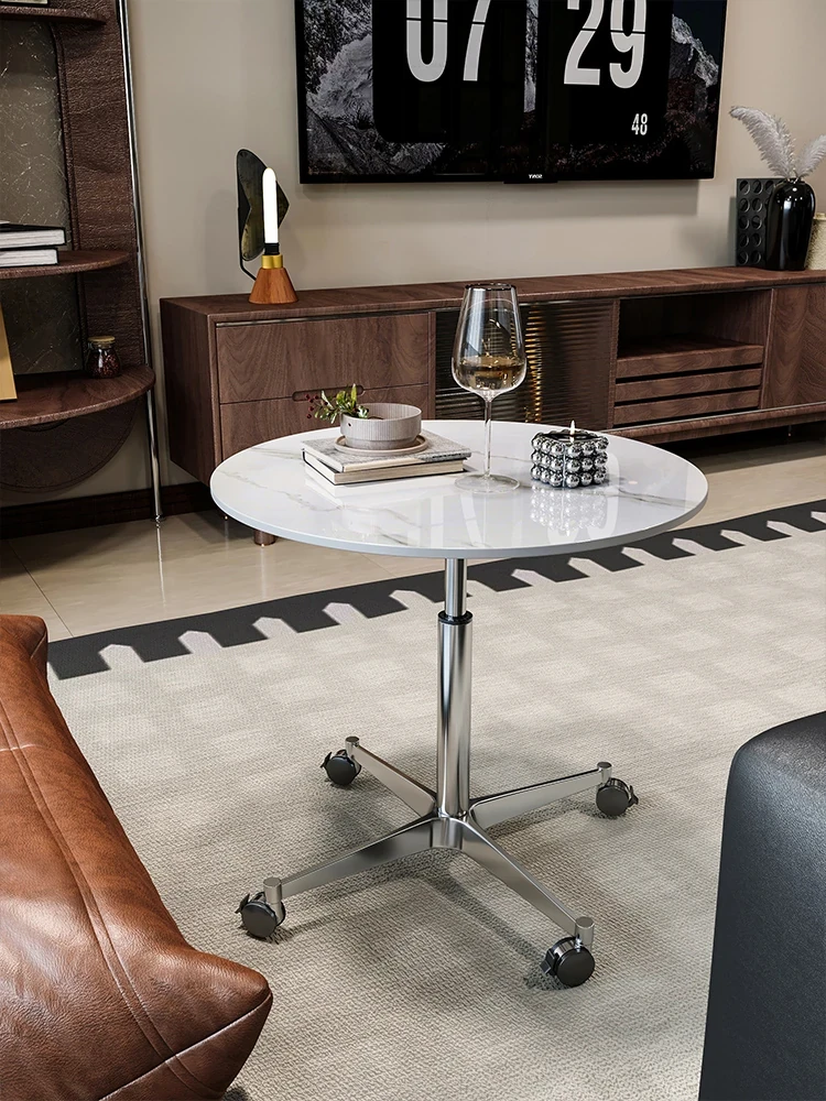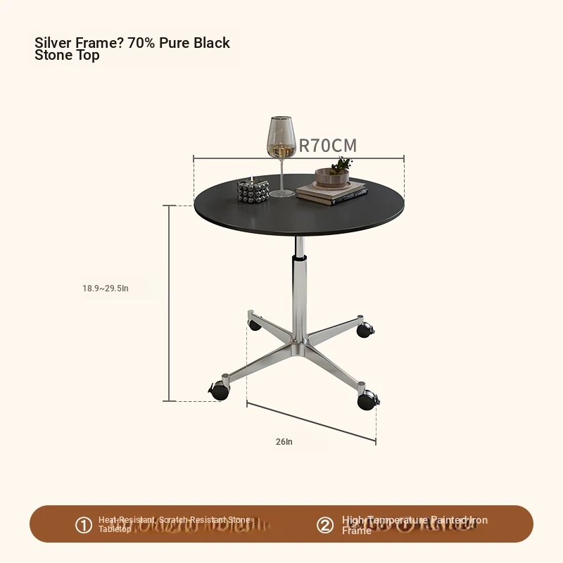 Elevate Your Living Space with Our Adjustable Round Coffee Table – Perfect for Small Apartments and Balconies! Featuring a Chic Vintage Design, This Compact Rock Plate Table is Ideal for Cozy Gatherings.