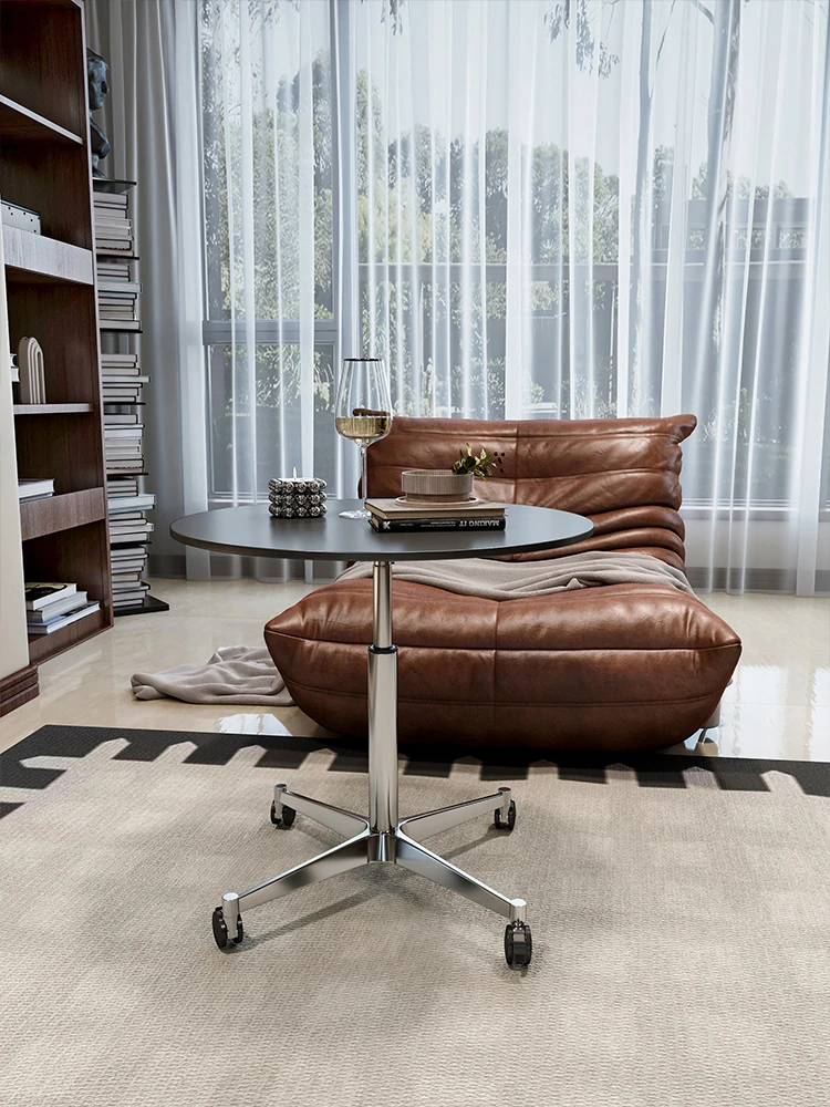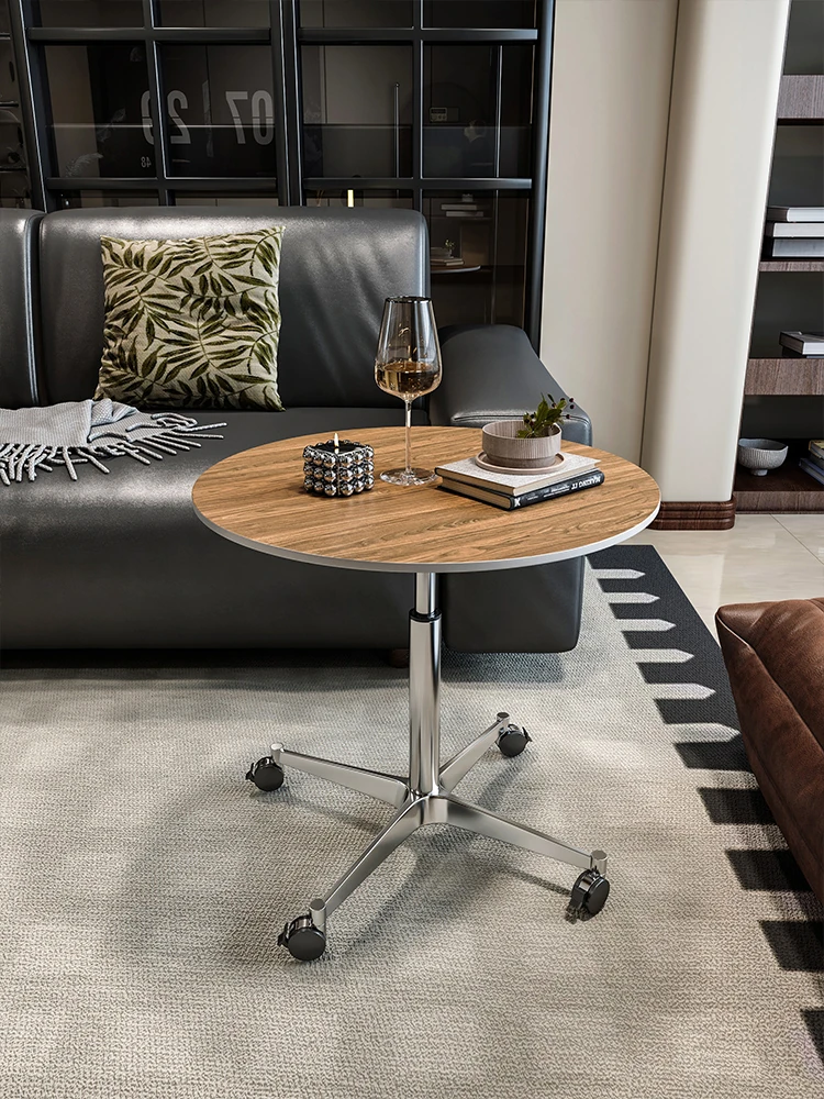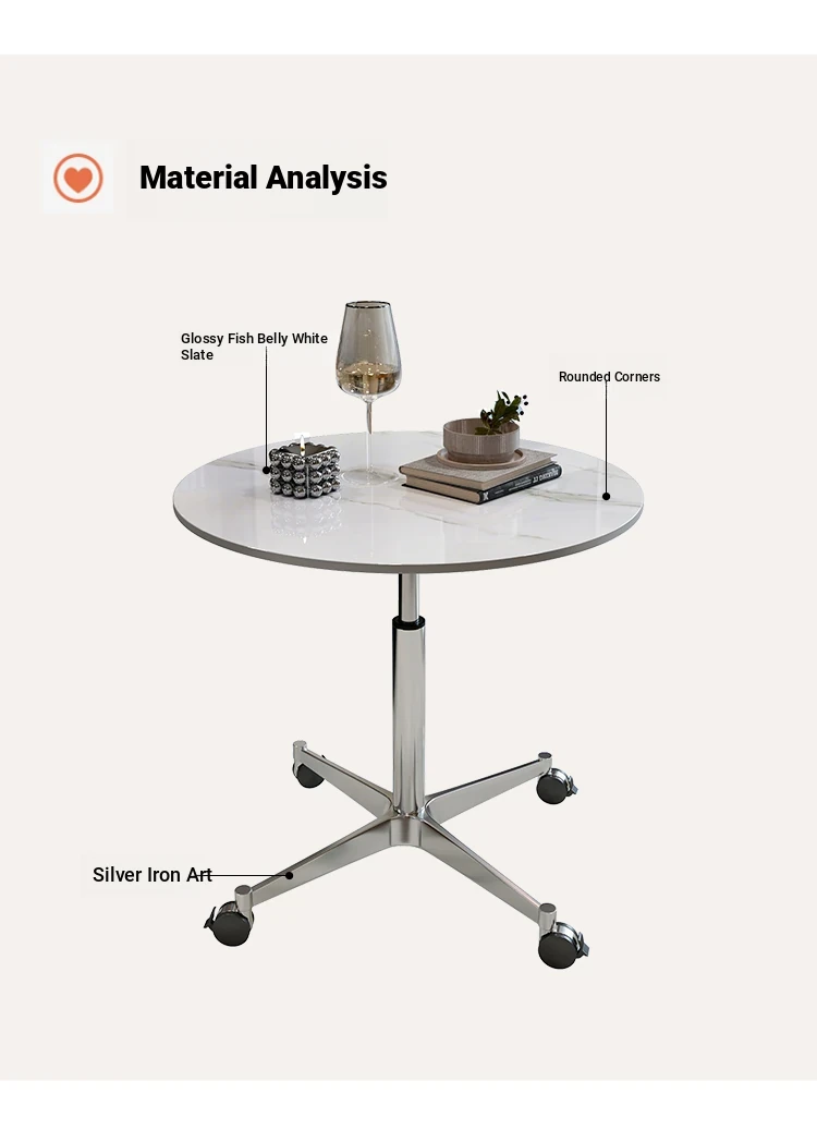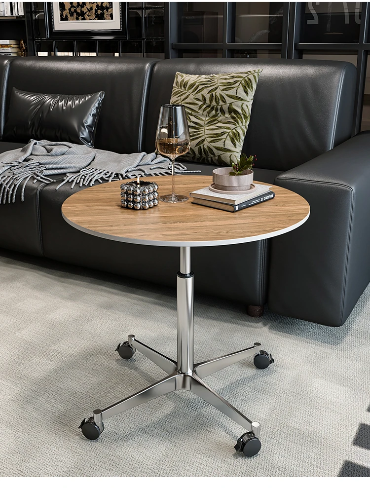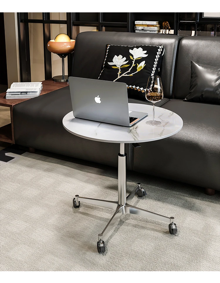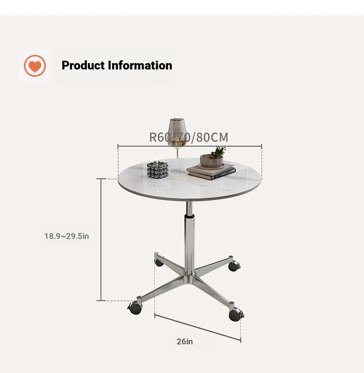Elevate Your Living Space with Our Adjustable Round Coffee Table – Perfect for Small Apartments and Balconies! Featuring a Chic Vintage Design, This Compact Rock Plate Table is Ideal for Cozy Gatherings.